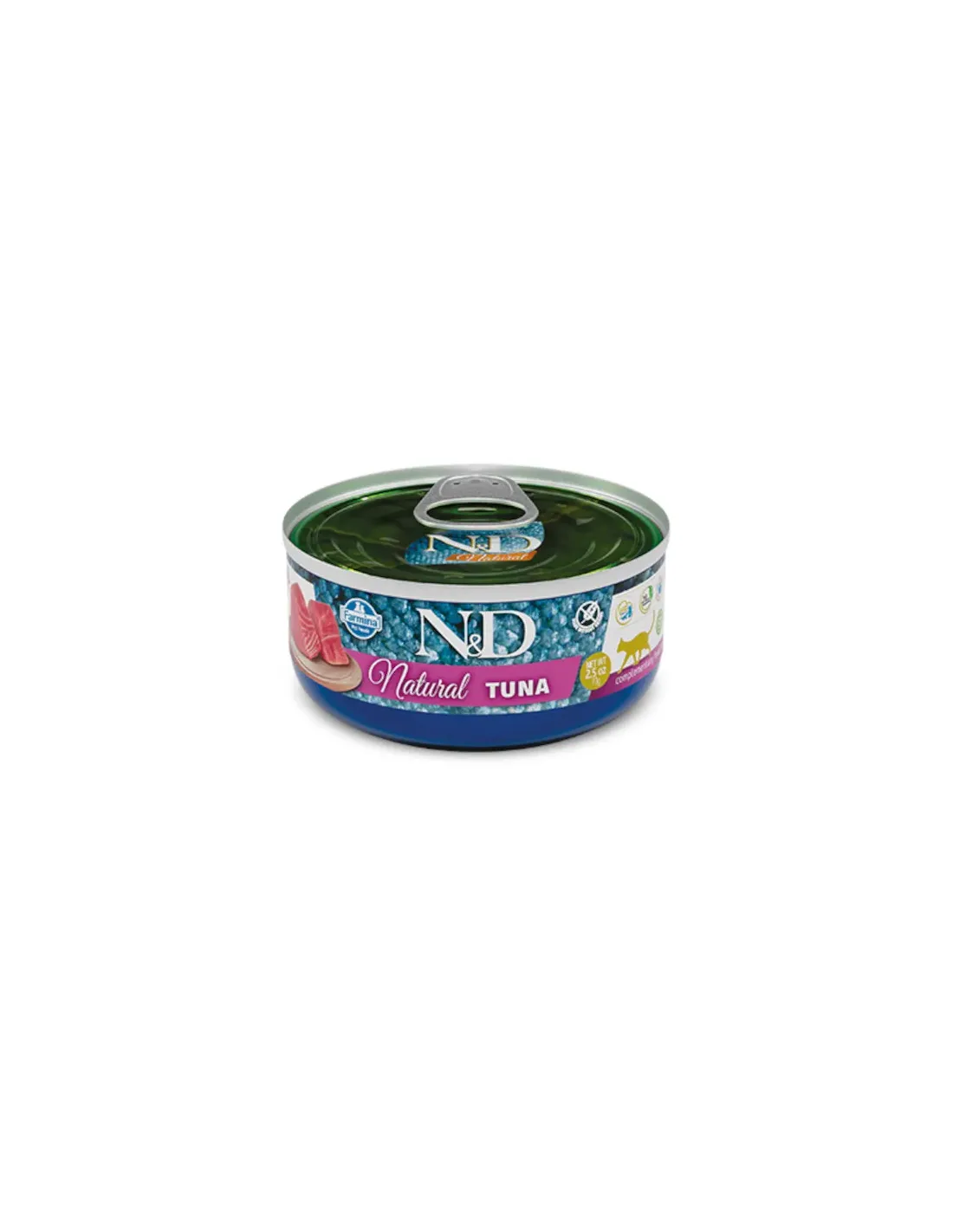 N&D Wet Cat Natural Tuna & Shrimps 140gr ist ein natürliches Nassfutter für Katzen, zubereitet aus ausgewählten, hochwertigen Zutaten, mit einer reichhaltigen Kombination aus Thunfisch und Garnelen, die einen unwiderstehlichen Geschmack und eine ausgewogene Nährstoffzufuhr für das Wohlbefinden Ihrer Katze bietet.