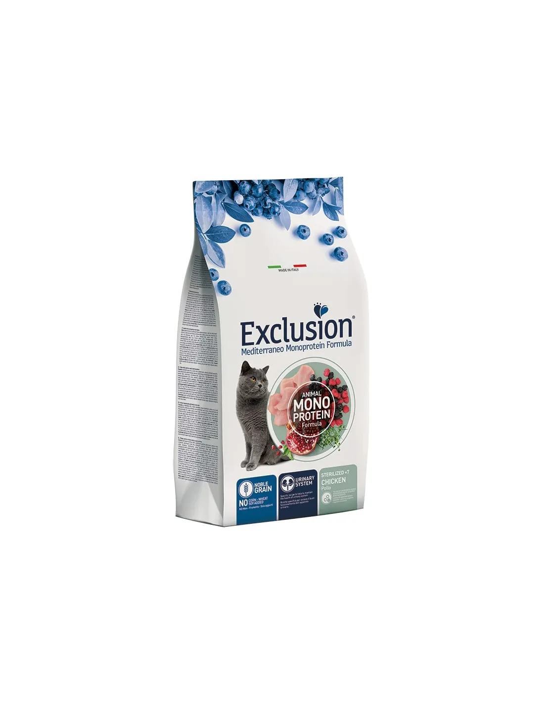 Exclusion Mediterraneo Monoprotein Noble Grain Sterilised +7 Chicken ist ein Alleinfuttermittel, das speziell für sterilisierte ältere Katzen über 7 Jahre entwickelt wurde. Es verwendet dehydriertes Huhn als einzige Quelle leicht verdaulichen tierischen Proteins, ideal für Katzen mit Nahrungsmittelunverträglichkeiten.