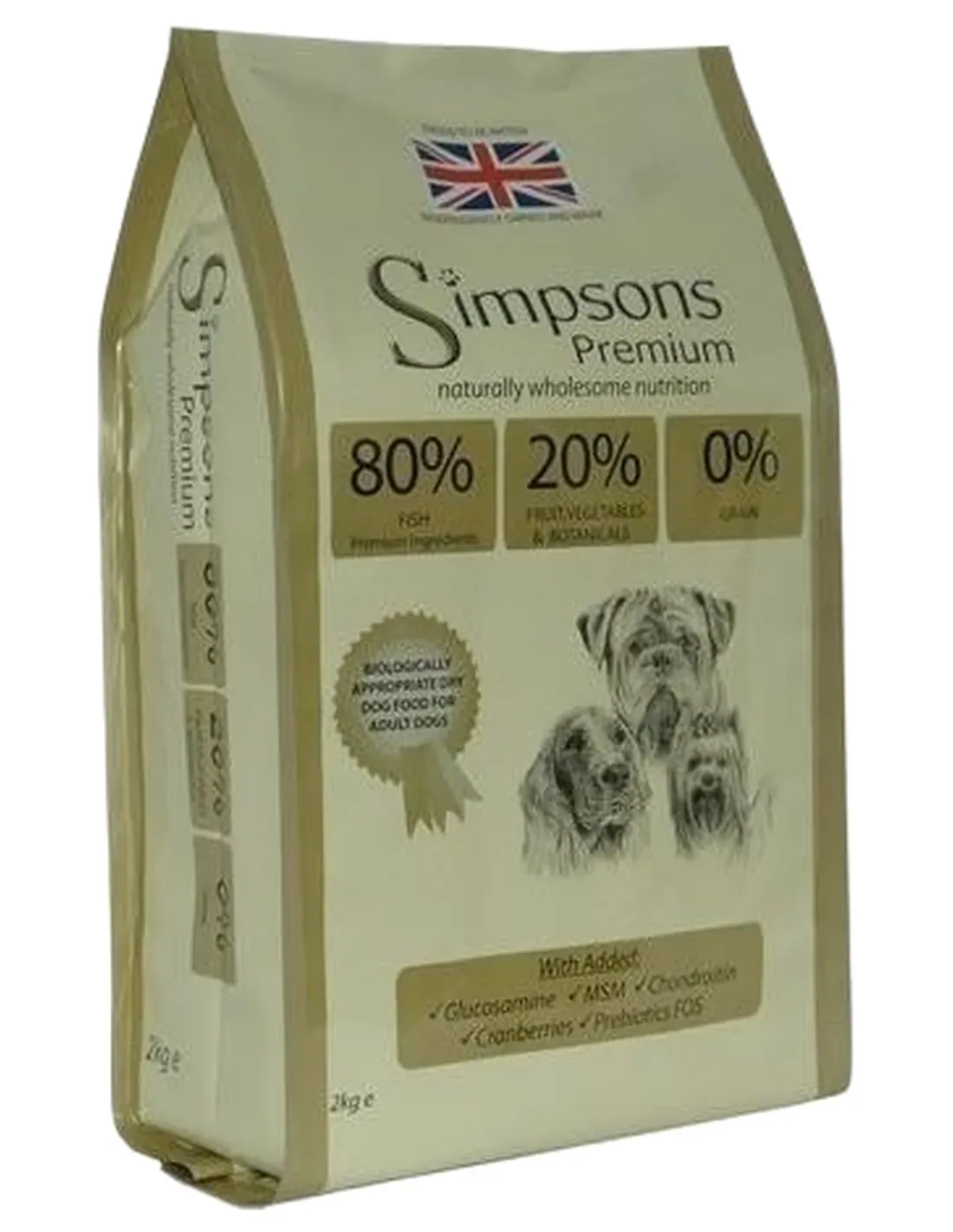 Das Simpsons Premium 80/20 Fisch-Knabberei für Erwachsene, hier in einer 2-kg-Packung, ist ideal für erwachsene Hunde aller Größen und enthält hochwertige und getreidefreie Zutaten.