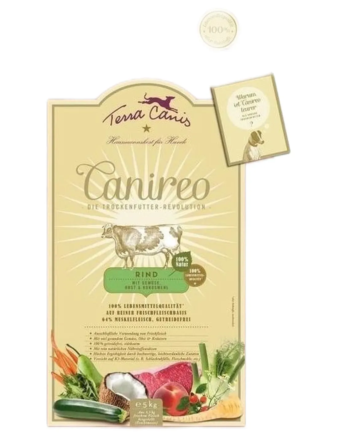 Canireo ist die Revolution im Trockenfuttersegment und wurde in Zusammenarbeit mit einem Tierarzt entwickelt. Das erste Trockenfutter in 100 % Lebensmittelqualität überzeugt durch die ausschließliche Verwendung von Frischfleisch mit rund 64 % Muskelfleisch als Monoproteinquelle. Abgerundet wird die Mahlzeit mit zwölf gesunden, ballaststoffreichen Obst- und Gemüsesorten, die für eine gesunde Verdauung sorgen. Algen, Eierschalen, Mineralerde, Aronia und Hagebutten liefern alle wichtigen Nährstoffe, während Bockshornklee und Rapsmehl die wertvollen Omega-3-Fettsäuren liefern. Canireo ist getreidefrei. Canireo wird in einem Lebensmittelunternehmen auf völlig natürliche und handwerkliche Weise zubereitet.
