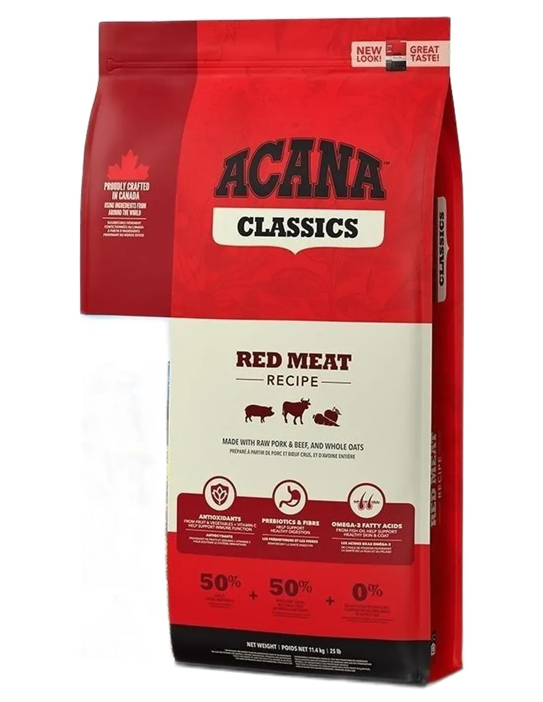 ACANA Red Meat ist vollgepackt mit äußerst nährstoffreichen tierischen Proteinen aus Lamm, Rind und Yorkshire-Schweinefleisch und gibt jedem Hund das, was er braucht, um aktiv und gesund zu bleiben.