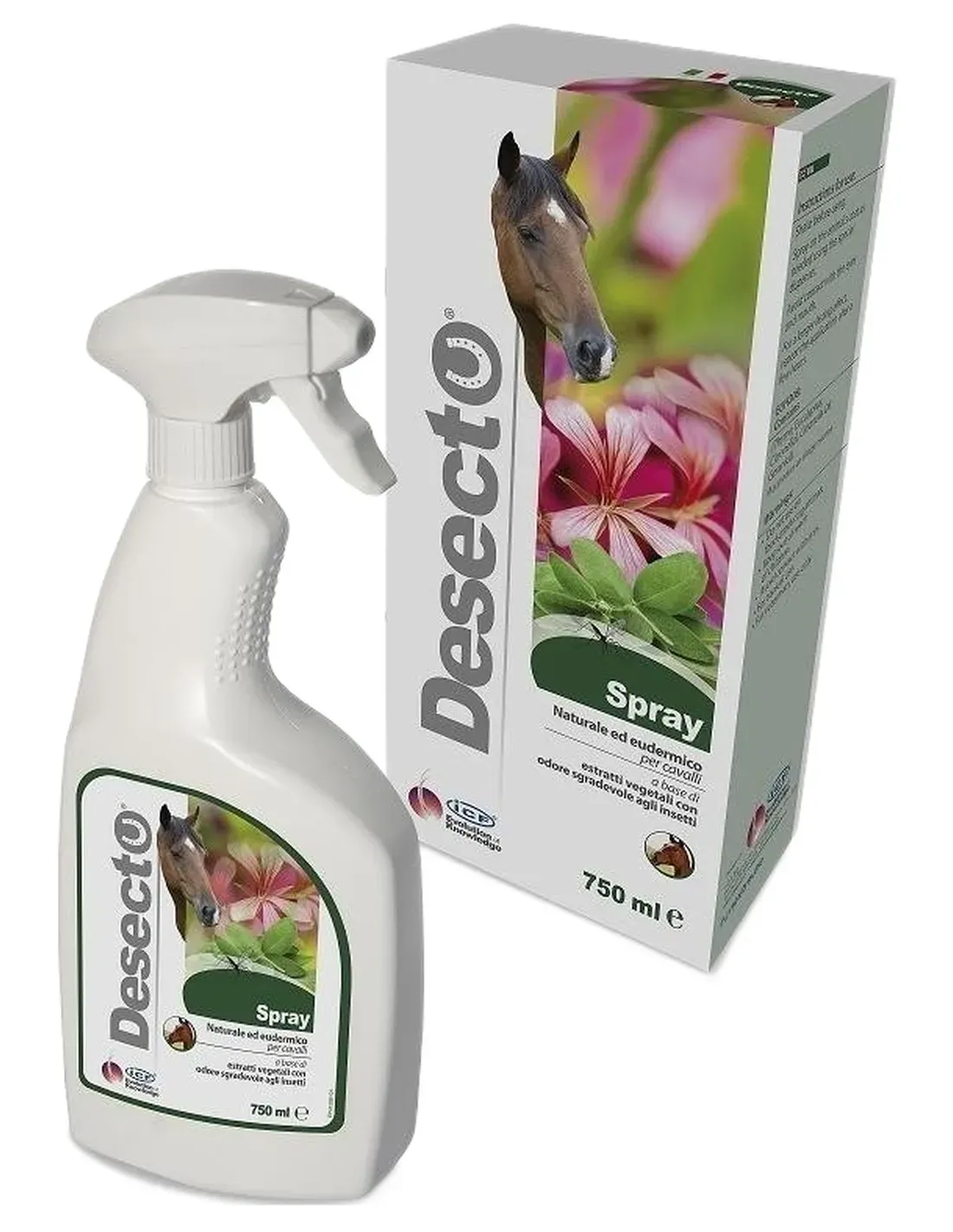 Desecto ist ein natürliches und hautfreundliches Spray für Pferde, das auf Pflanzenextrakten basiert, die dem Produkt einen eigenartigen Geruch verleihen, der für Insekten und Parasiten unangenehm ist.