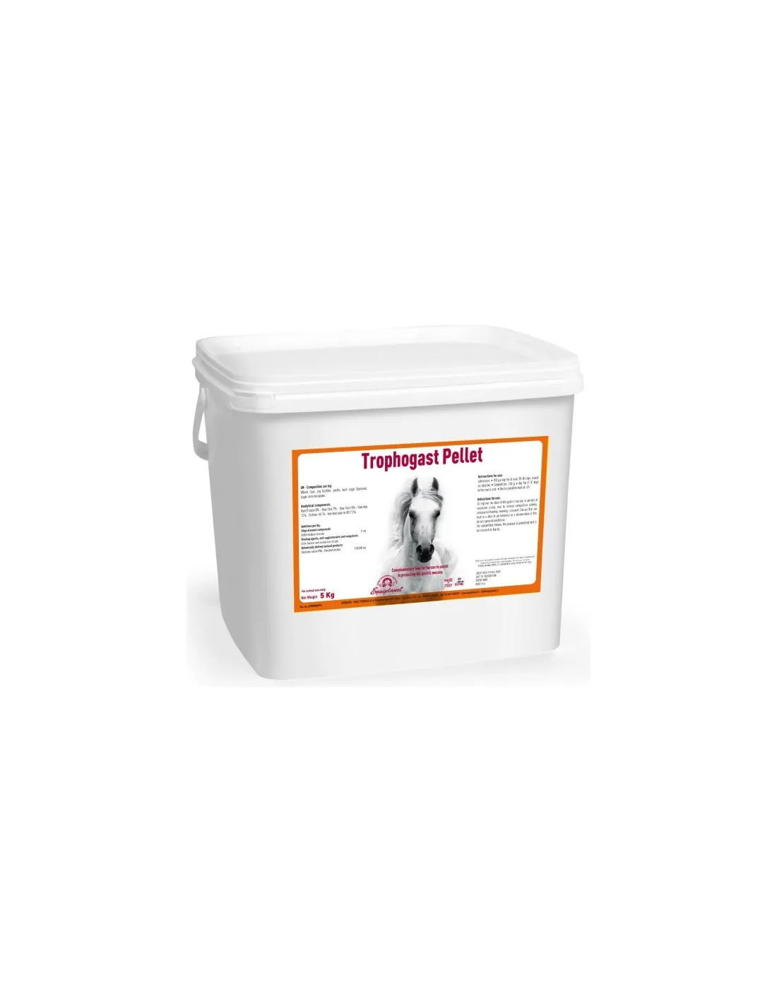 Die ständige Anwendung von Trophogast Pellet trägt zur Gesundheit der Magen- und Darmschleimhaut bei, da spezifische Inhaltsstoffe in Synergie wirken, um die Regelmäßigkeit der Darmpassage zu fördern und das Auftreten von Verdauungsbeschwerden im Zusammenhang mit Dysbiose oder übermäßiger Magensäure zu begrenzen. Die Formulierung eignet sich auch ideal als Unterstützung bei Ernährungsumstellungen, Transportstress oder intensiver sportlicher Aktivität, Bedingungen, die häufig das empfindliche Magen-Darm-Gleichgewicht von Equiden beeinträchtigen können. Das praktische 5-kg-Format ermöglicht eine länger anhaltende und wirtschaftliche Verabreichung im Rahmen von Tierschutz- und Tierschutzprogrammen.