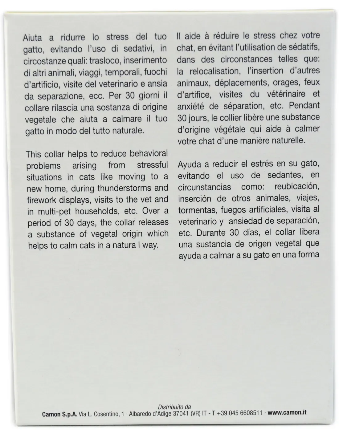 30 Tage lang setzt das Halsband eine Substanz pflanzlichen Ursprungs frei, die auf völlig natürliche Weise zur Beruhigung der Katze beiträgt und dabei hilft, Stress, Ängste und dysfunktionales oder aggressives Verhalten zu reduzieren.