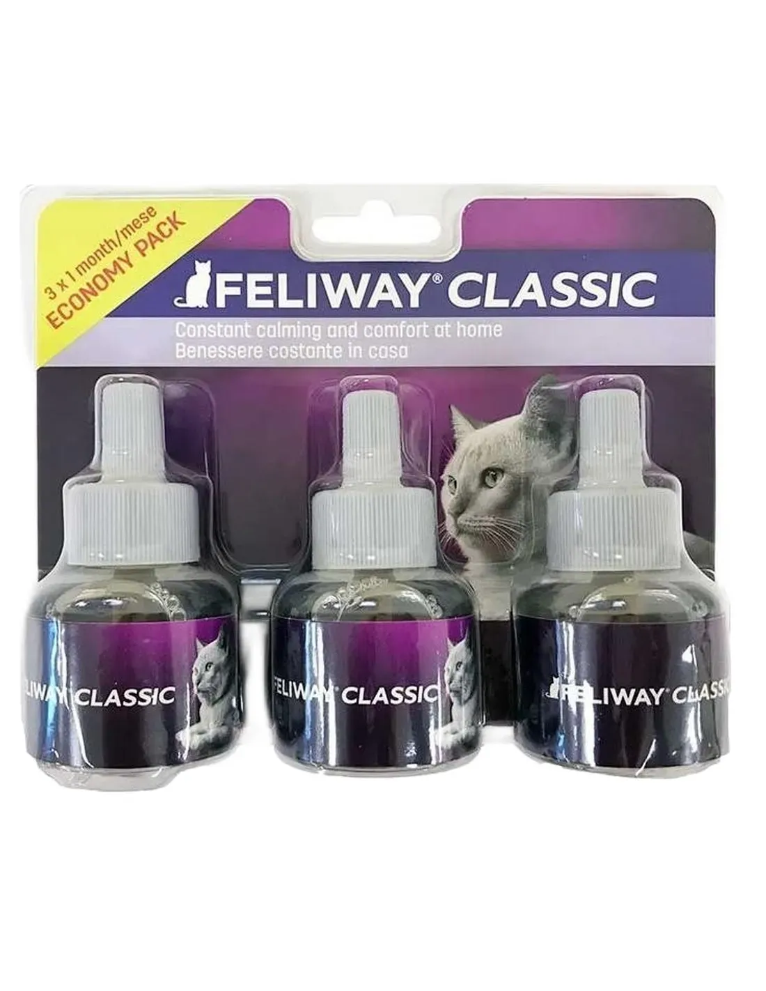 Feliway Classic basiert auf dem katzenartigen Gesichtspheromon, das Katzen in der Natur abgeben, indem sie ihre Schnauze an Menschen, Möbeln, Türen und anderen Gegenständen im Haus reiben. Es ist ein Zeichen dafür, dass sie sich in der Umgebung, in der sie leben, wohl und sicher fühlen. Feliway Classic vermittelt in der Umgebung, in der die Katze lebt, das gleiche Gefühl der Sicherheit wie die Pheromone, die Katzen in der Natur ablagern.