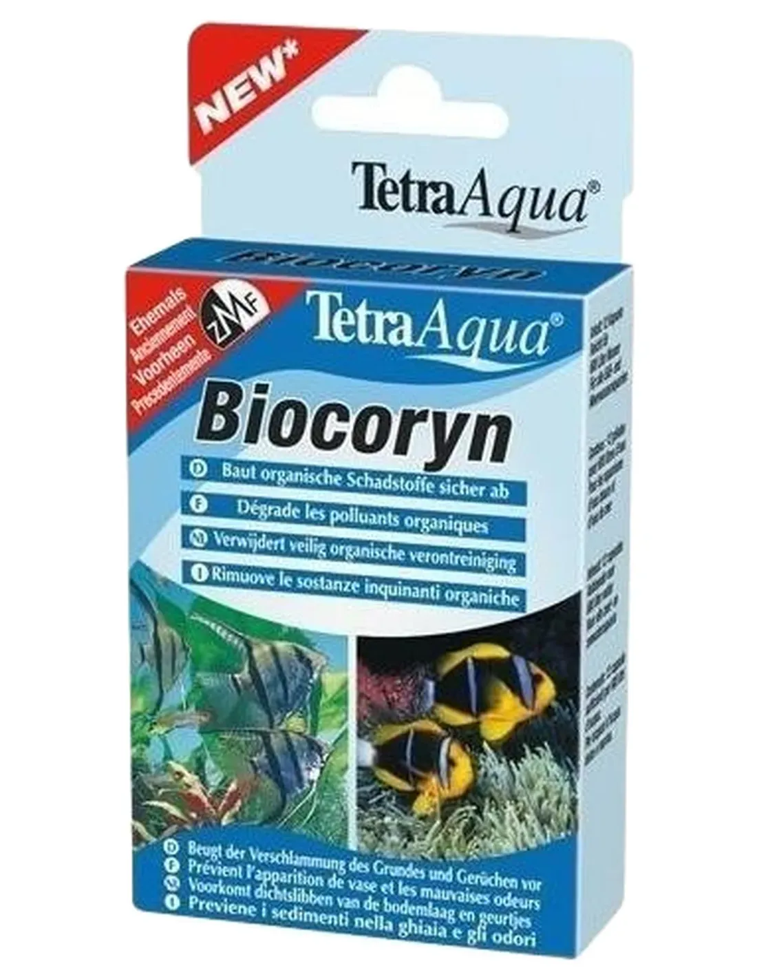 Tetra Aqua Biocoryn sollte nicht ohne den Rat eines Aquarienexperten in Aquarien mit empfindlichen oder seltenen Arten eingesetzt werden. Der Einsatz in Aquarien mit Korallen oder Wirbellosen, die mit den Wirkstoffen der Behandlung nicht kompatibel sind, wird nicht empfohlen. Im Falle einer Überdosierung oder wenn bei Fischen Nebenwirkungen beobachtet werden, sollte die Behandlung sofort abgebrochen und ein Experte konsultiert werden. Verwenden Sie dieses Produkt nicht bei bekannter Überempfindlichkeit gegen einen oder mehrere Bestandteile der Formulierung. Darüber hinaus ist das Produkt nicht für den menschlichen oder tierischen Verzehr außerhalb der angegebenen Gewässer bestimmt. Befolgen Sie stets die Anweisungen zur Dosierung und Verabreichungsmethode, um Veränderungen im Ökosystem des Aquariums zu vermeiden.