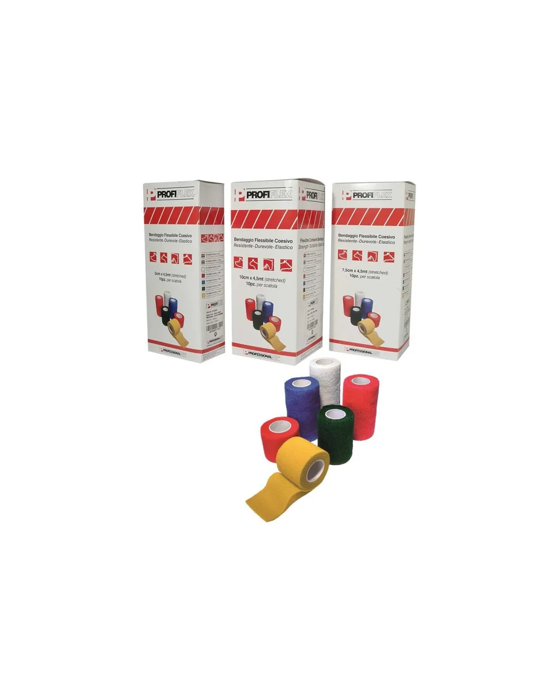 Die kohäsiven flexiblen Bandagen von Profiflex sind eine innovative Verbandslösung, die eine zuverlässige und komfortable Unterstützung bietet. Diese Bandagen sind vollständig selbstklebend, sodass keine Bandagenhalter oder andere Klebstoffe verwendet werden müssen. Ihre einzigartige Zusammensetzung gewährleistet eine hohe Widerstandsfähigkeit und Flexibilität, die sich perfekt an die Körperkonturen anpasst, wodurch sie sich ideal für eine Vielzahl medizinischer und sportlicher Anwendungen eignen.