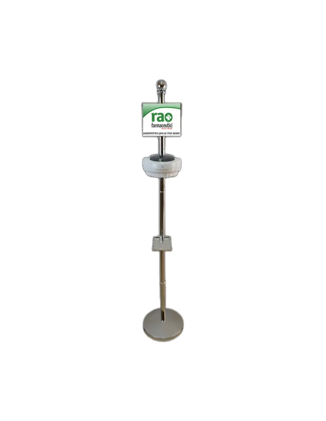 Elegante Stehleuchte mit verchromter Aluminiumstruktur, komplett mit 500 ml elektronischer Spenderfür Gel oder Flüssigseife.