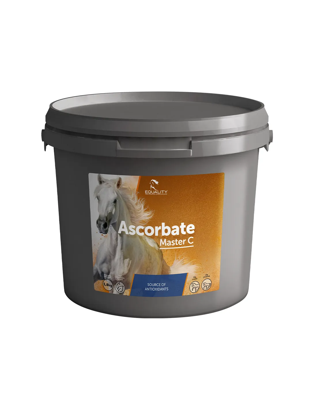 Ascorbate-Master C ist die geeignete Formulierung, um dem Pferd wirksame Unterstützung bei Problemen zu bieten, die durch das Vorhandensein oxidierender Substanzen verursacht werden. Die Einwirkung oxidierender Substanzen auf den Organismus, sowohl von außen als auch von innen, kann zu oxidativem Stress führen. Die Verwendung von Vitamin C hat eine natürliche antioxidative Wirkung, die wichtig ist, um die durch die übermäßige Produktion freier Radikale auf Lungenebene verursachten Schäden auszugleichen (Deaton CM et al., Equine Vet J.Suppl. 2002). Vitamin C hat nicht nur eine eigene antioxidative Funktion, sondern ist auch in der Lage, die anderen Komponenten des antioxidativen Systems, insbesondere Vitamin E, zu regenerieren oder zu recyceln. Die Aufnahme von Vitamin C bei Pferden wird sowohl von der Menge als auch von der Form, in der es verfügbar ist, beeinflusst. Ascorbate-Master C enthält Vitamin C in Form von Calciumascorbat.