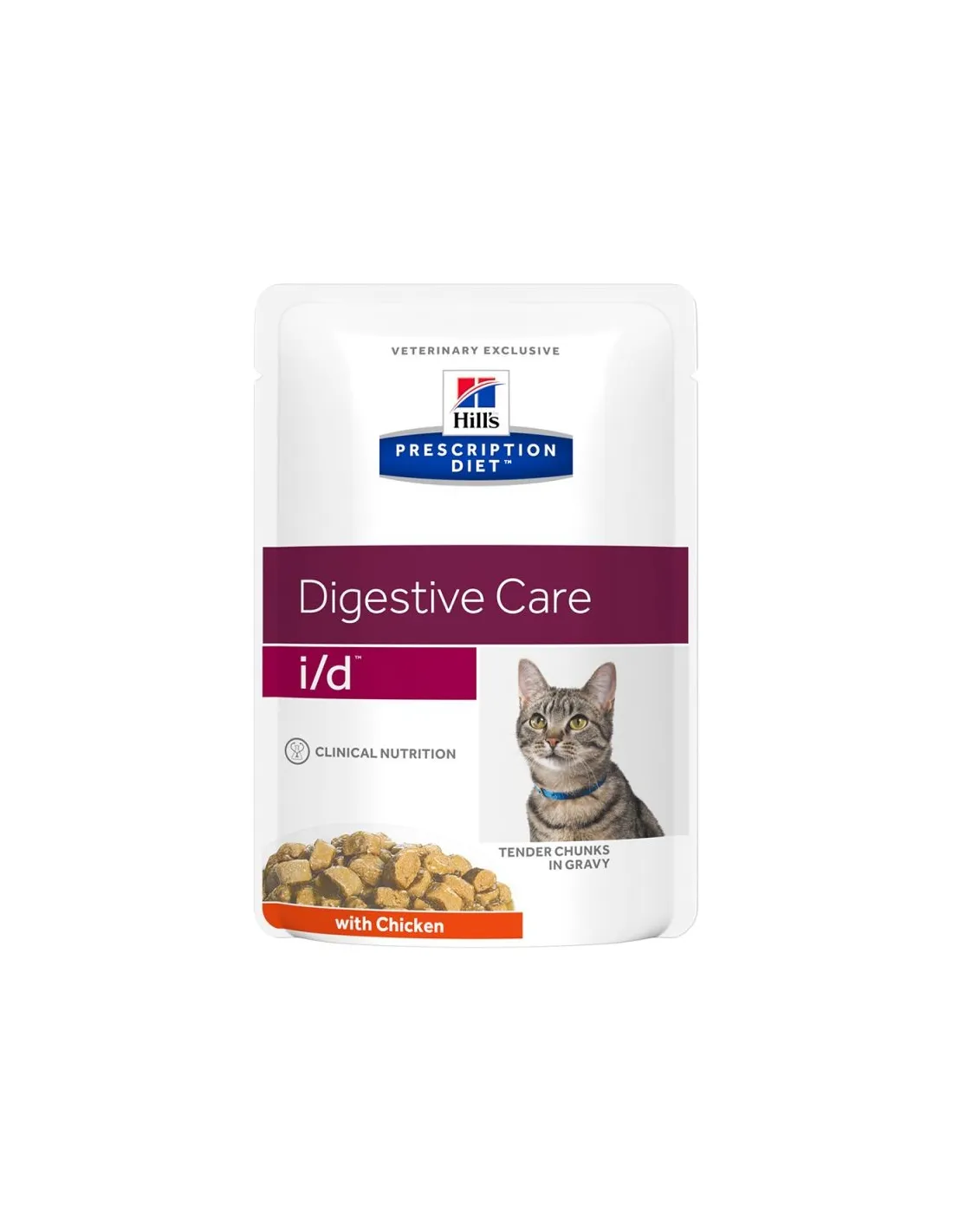 Hill's Prescription Diet I/D Chicken ist ein Nassfutter für Katzen, das zur Unterstützung der Verdauungsgesundheit entwickelt wurde. Dieses Produkt ist in 85-Gramm-Beuteln verpackt und wird in Mehrfachpackungen mit 12 Stück verkauft.