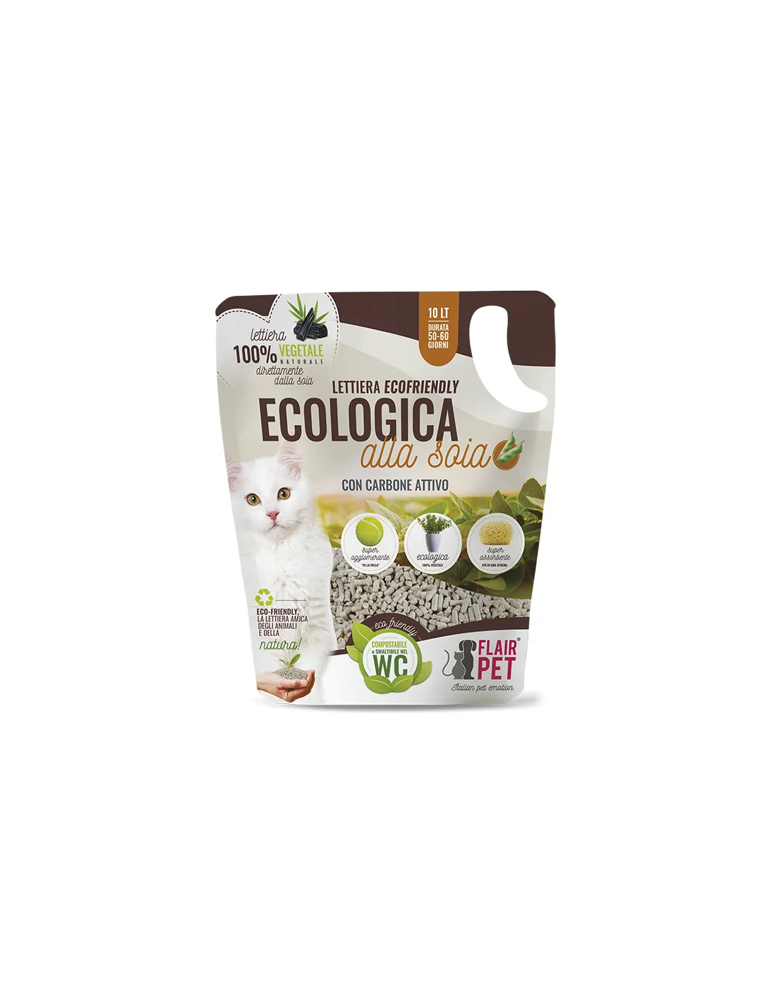 Das pflanzliche Soja-Hygienestreu mit Aktivkohle von Flairpet ist ein hochwertiges Produkt, ideal für Katzen mit einem besonders empfindlichen Geruchssinn. Diese Streu ist in einem Fassungsvermögen von 10 Litern erhältlich und bietet dank Aktivkohle, einem völlig natürlichen Material, eine wirksame Lösung zur Neutralisierung schlechter Gerüche.