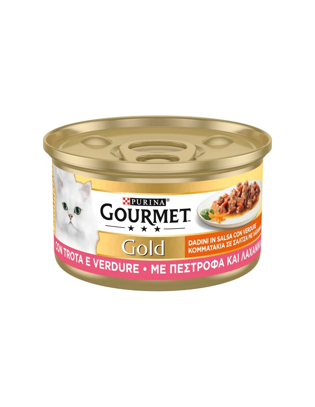 CAT GOURMET GOLD 85GR GEWÜRFELTE TROUTEN MIT MARINARA ist ein hochwertiges Katzenfutter, verpackt in einer praktischen 85-Gramm-Dose. Dieses Produkt besteht aus gewürfelten Forellen und Gemüse und bietet Ihrer Katze eine schmackhafte und nahrhafte Mahlzeit.