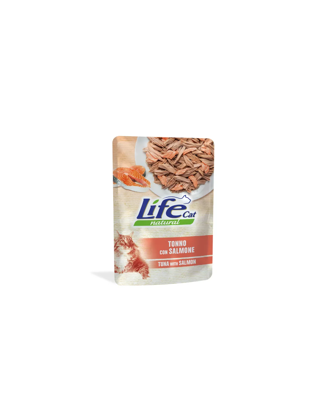 Life Cat Natural Thunfisch mit Lachs ist ein Nassfutter für Katzen, präsentiert im praktischen 70-g-Beutel. Dieses Produkt kombiniert den köstlichen Geschmack von Thunfisch mit dem von Lachs und bietet Ihrer Katze eine nährstoffreiche und äußerst schmackhafte Mahlzeit.