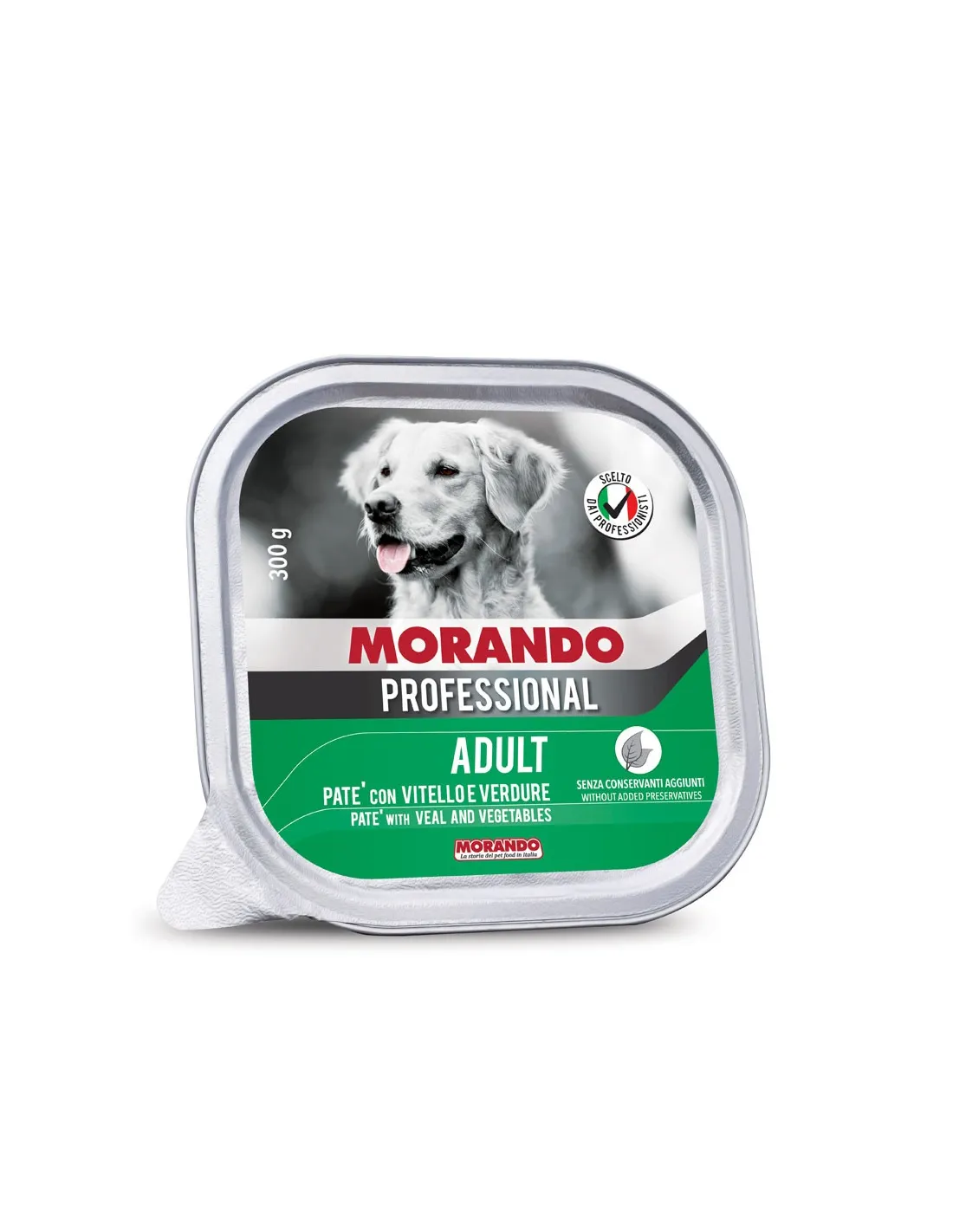Morando Migliorcane Professional Paté mit Kalbfleisch und Gemüse ist ein Alleinfuttermittel für Hunde, präsentiert in einer praktischen 300-g-Schale. Diese Pastete wurde speziell für die Ernährungsbedürfnisse von Hunden aller Größen und Rassen entwickelt und bietet eine schmackhafte Mahlzeit, die reich an essentiellen Nährstoffen ist.