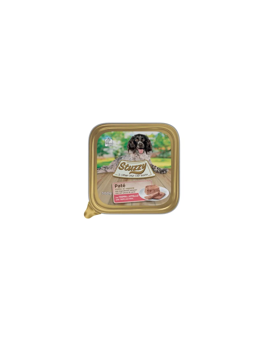 Stuzzys klassische Pastete mit Kutteln und Kalbfleisch ist ein Alleinfuttermittel für Hunde, zubereitet mit natürlichen Zutaten und echten gedämpften Fleischstücken. Dieses Futter eignet sich besonders für Hunde, die weiche Konsistenzen und intensive Aromen bevorzugen. Seine Formel ist reich an Fleisch und Nebenprodukten, die 65 % des Produkts ausmachen, wobei Kutteln und Kalbfleisch zu gleichen Teilen (jeweils 16 %) enthalten sind.