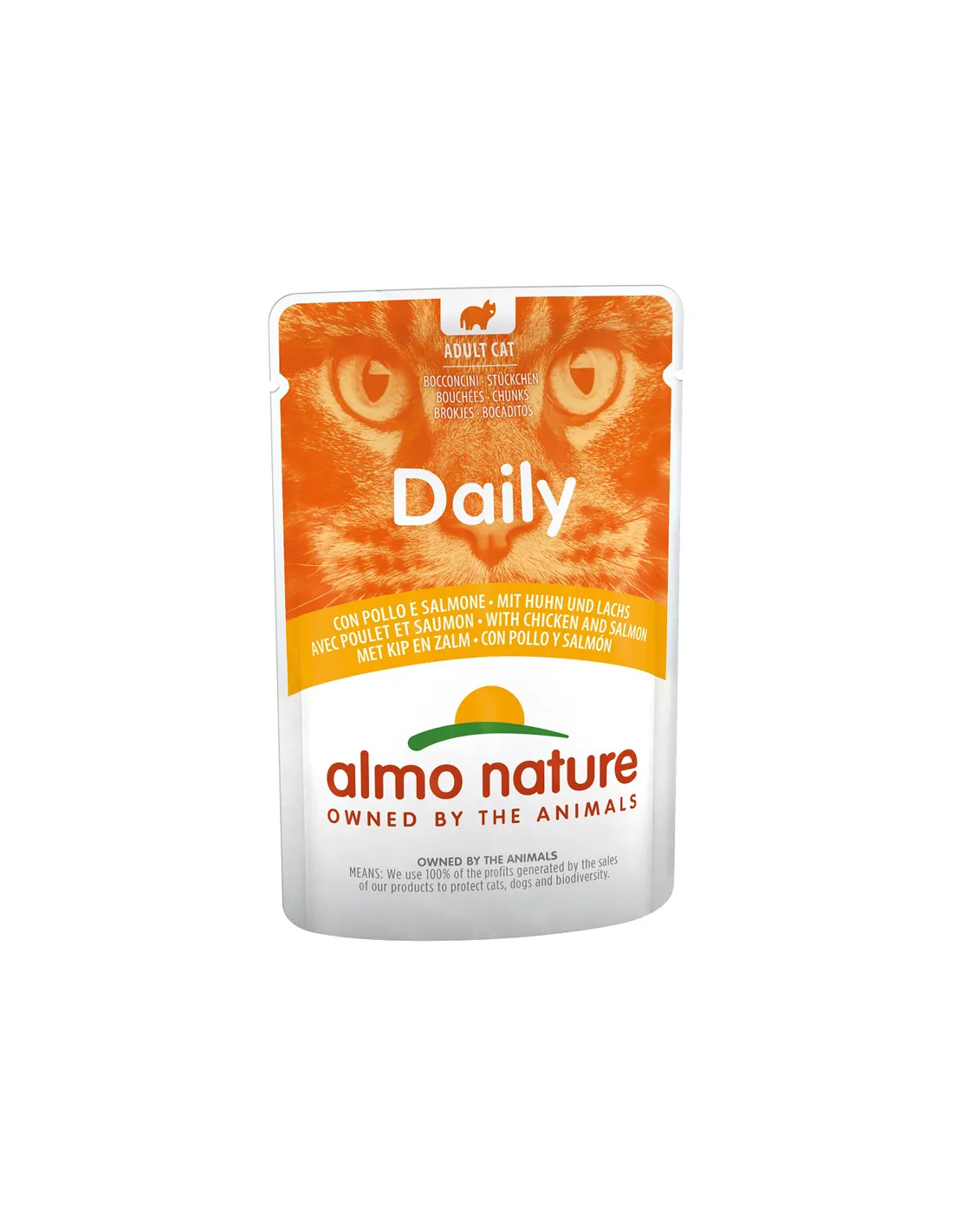 Almo Cat Daily Menu 70 Gr Huhn und Lachs ist ein Futtermittel für Katzen, das eine vollständige und ausgewogene Mahlzeit bietet, die reich an ausgewählten Zutaten wie Huhn und Lachs ist und Geschmack und Qualität in jeder 70-Gramm-Packung garantiert.