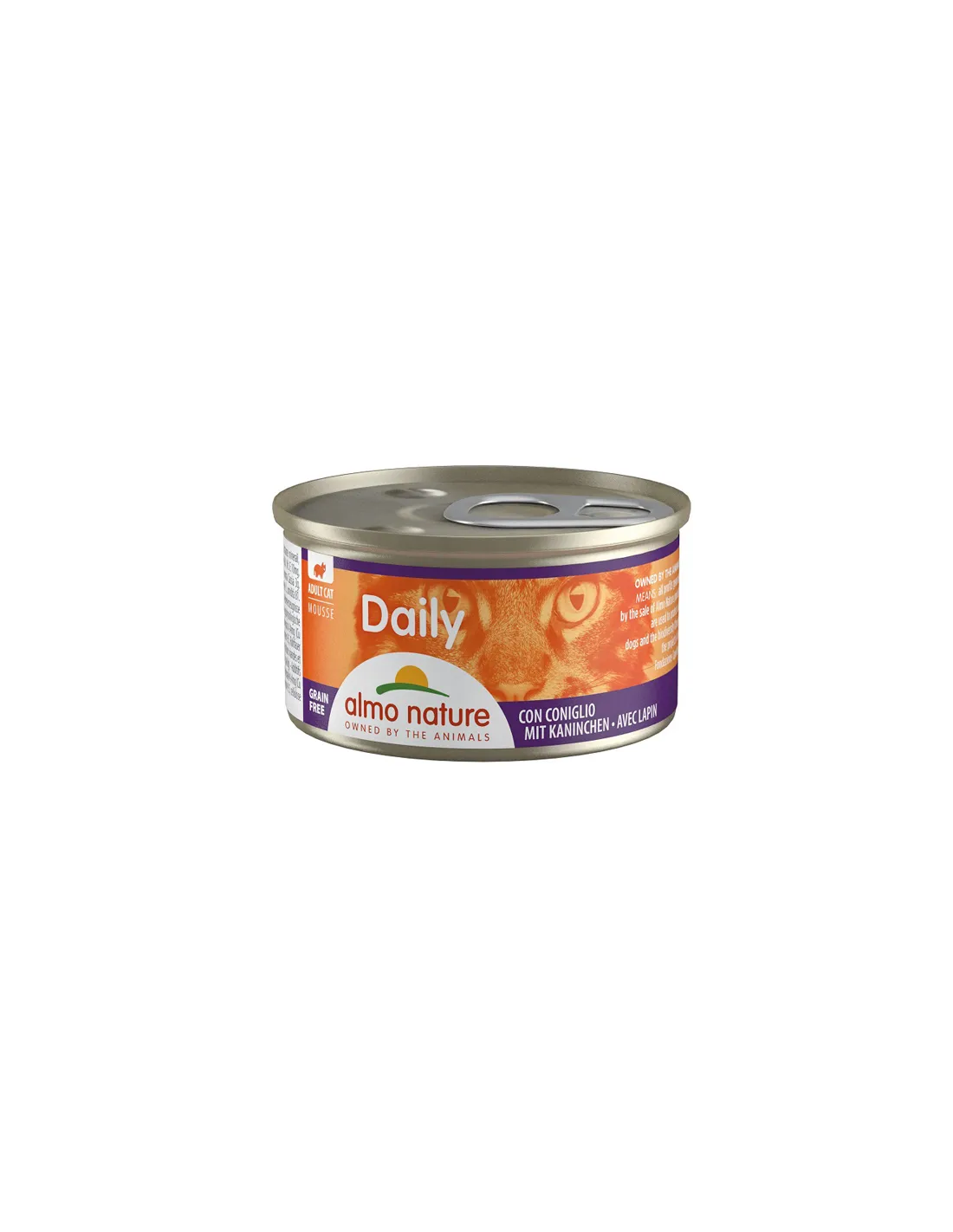 Almo Cat Daily Menu 85 Gr Rabbit Mousse ist ein komplettes und ausgewogenes Nassfutter für Katzen jeden Alters, formuliert mit hochwertigen Zutaten, um Geschmack, Gesundheit und Wohlbefinden zu garantieren. Die weiche Mousse auf Kaninchenbasis eignet sich besonders für Katzen, die eine cremige und appetitliche Konsistenz bevorzugen, auch perfekt für Tiere mit Kauschwierigkeiten oder besonderen Ernährungsbedürfnissen.