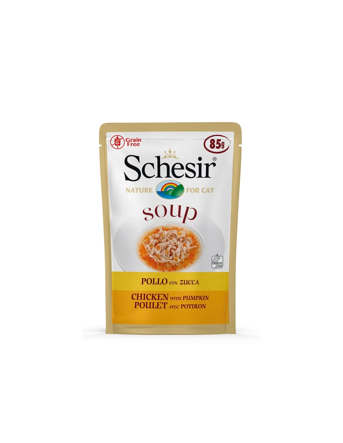 Die Suppenlinie von Schesir wurde entwickelt, um ein einzigartiges kulinarisches Erlebnis mit sorgfältig ausgewählten und zubereiteten Zutaten zu bieten. Die Rezeptur wurde so entwickelt, dass sie nicht nur appetitlich, sondern auch nahrhaft ist und eine hervorragende Proteinquelle enthält, die zum allgemeinen Wohlbefinden der Katze beiträgt. Die 100 % natürlichen Zutaten werden gedämpft und von Hand verarbeitet, um ein Endprodukt von höchster Qualität ohne Zusatz von Konservierungsmitteln oder künstlichen Farbstoffen zu gewährleisten. Darüber hinaus verpflichtet sich Schesir zur Einhaltung hoher ethischer Standards und stellt sicher, dass alle seine Produkte frei von Tierversuchen sind.