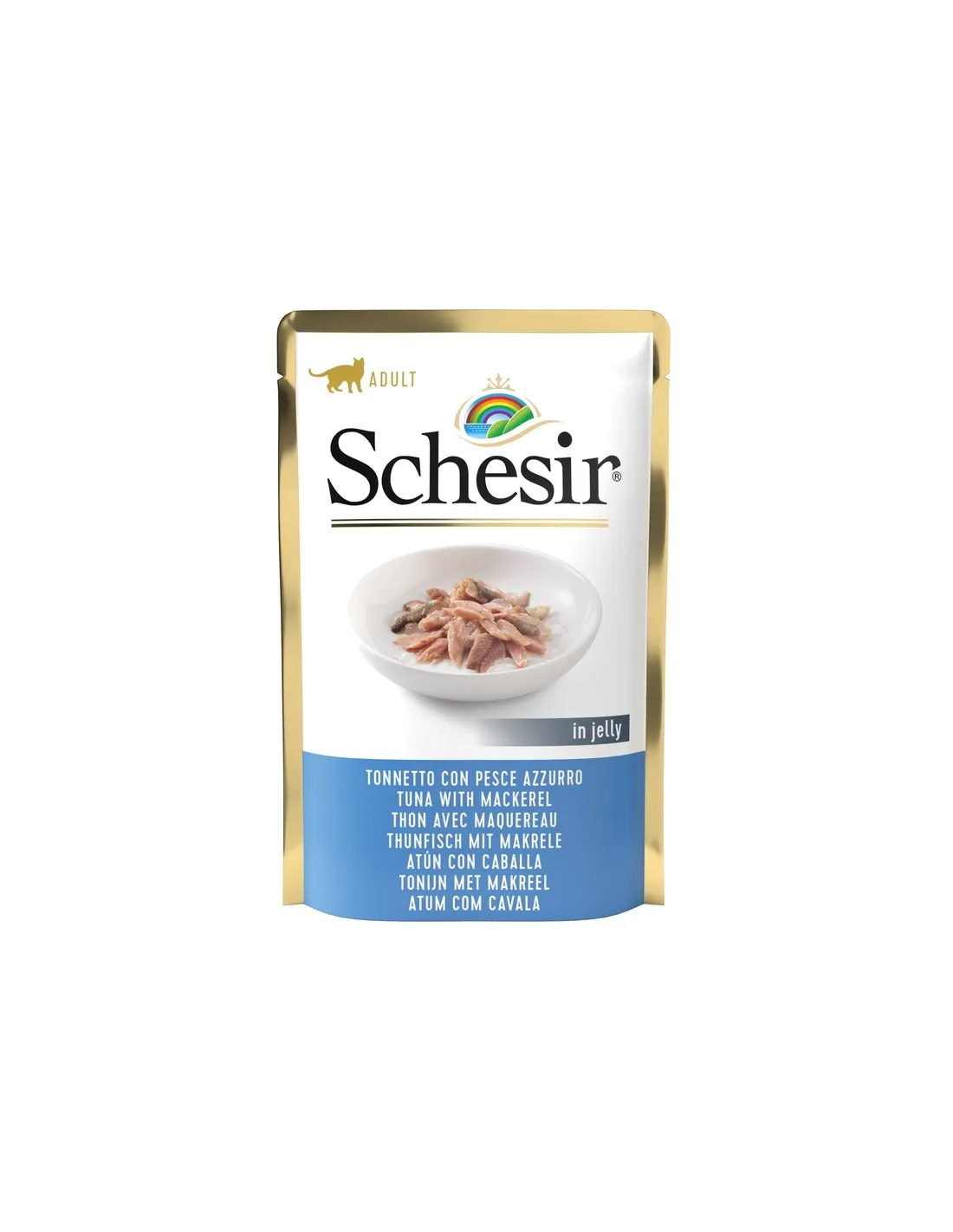 Schesir Cat Thunfisch und Blaufisch im 85-g-Beutel ist ein hochwertiges Nassfutter für ausgewachsene Katzen, das Ihrem Katzenfreund ein außergewöhnliches kulinarisches Erlebnis garantiert. Dieses Produkt zeichnet sich durch seine tierversuchsfreie Philosophie und die Verwendung echter und natürlicher Inhaltsstoffe aus. Echte Thunfischfilets, gedämpft, um ihren Geschmack und ihre Nährwerte zu bewahren, bilden die Hauptgrundlage dieses appetitlichen Rezepts. Der Zusatz von fettem Fisch, der für seinen hohen Gehalt an Omega-3-Fettsäuren bekannt ist, trägt zur Verbesserung der Haut- und Fellgesundheit Ihrer Katze bei und unterstützt außerdem die kognitiven Funktionen und die Herz-Kreislauf-Gesundheit. Die Gelatinezubereitung trägt zur Aufrechterhaltung der Flüssigkeitszufuhr bei und macht die Mahlzeit noch einladender.