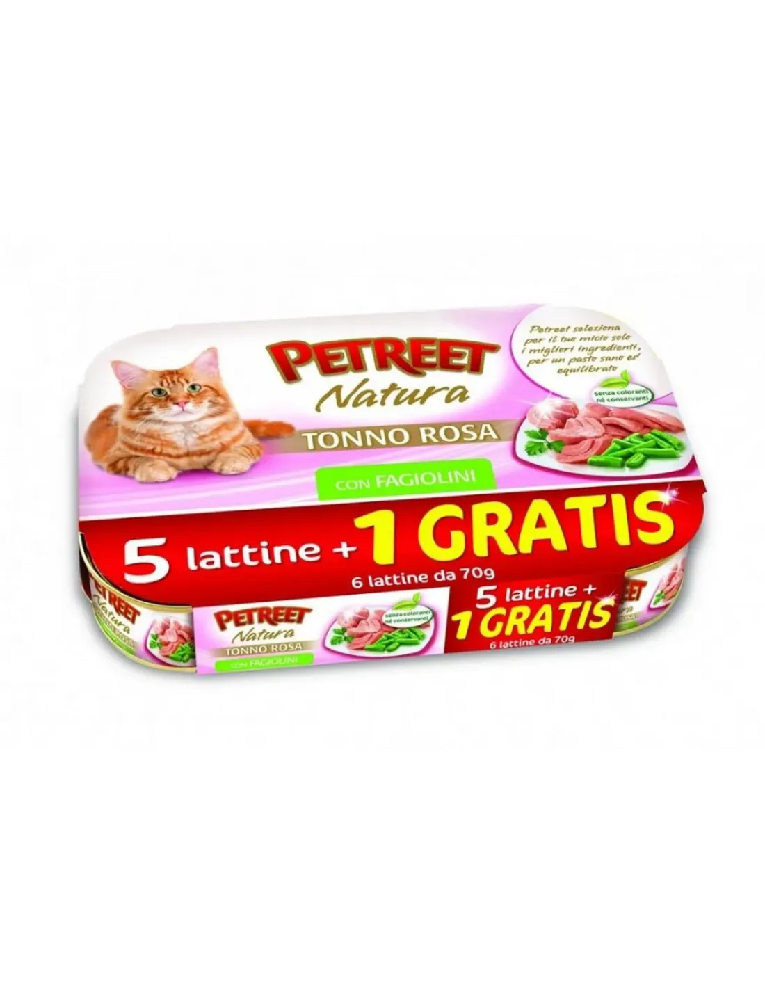 Petreet - Rosa Thunfisch mit Garnelen 6x70g ist ein hochwertiges Nassfutter für Katzen, das eine Kombination ausgewählter Zutaten bietet, um den Gaumen unserer Katzenfreunde zu befriedigen. Dieses Produkt zeichnet sich durch seine Rezeptur aus, die reich an rosa Thunfisch ist, der 60,1 % der Zusammensetzung ausmacht und so eine hochwertige Proteinaufnahme garantiert. Garnelen mit einem Anteil von mindestens 4,1 % sorgen für einen Hauch von Geschmack und Raffinesse und machen jede Mahlzeit zu einem Moment puren Vergnügens für die Katze.