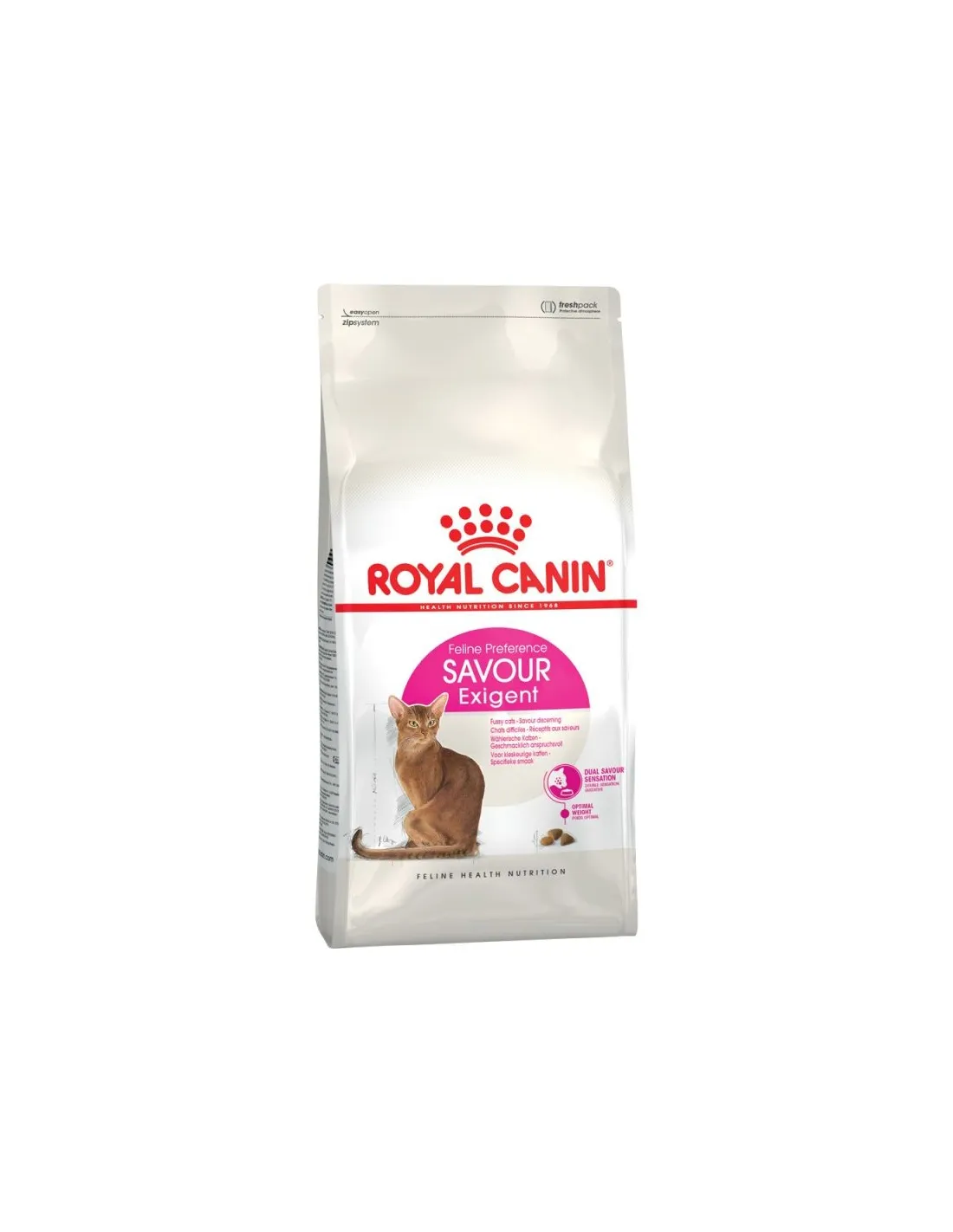 Royal Canin Feline Health Nutrition Exigent 35/30 Savor Sensation ist ein vollständiges und ausgewogenes Futter, das speziell auf die Bedürfnisse erwachsener Katzen mit besonders raffiniertem und kapriziösem Geschmack zugeschnitten ist. Dieses einzigartige Produkt bietet eine Kombination aus zwei verschiedenen Kroketten mit jeweils unterschiedlicher Form, Nährstoffzusammensetzung und Textur, um den Appetit der anspruchsvollsten Katzen anzuregen.