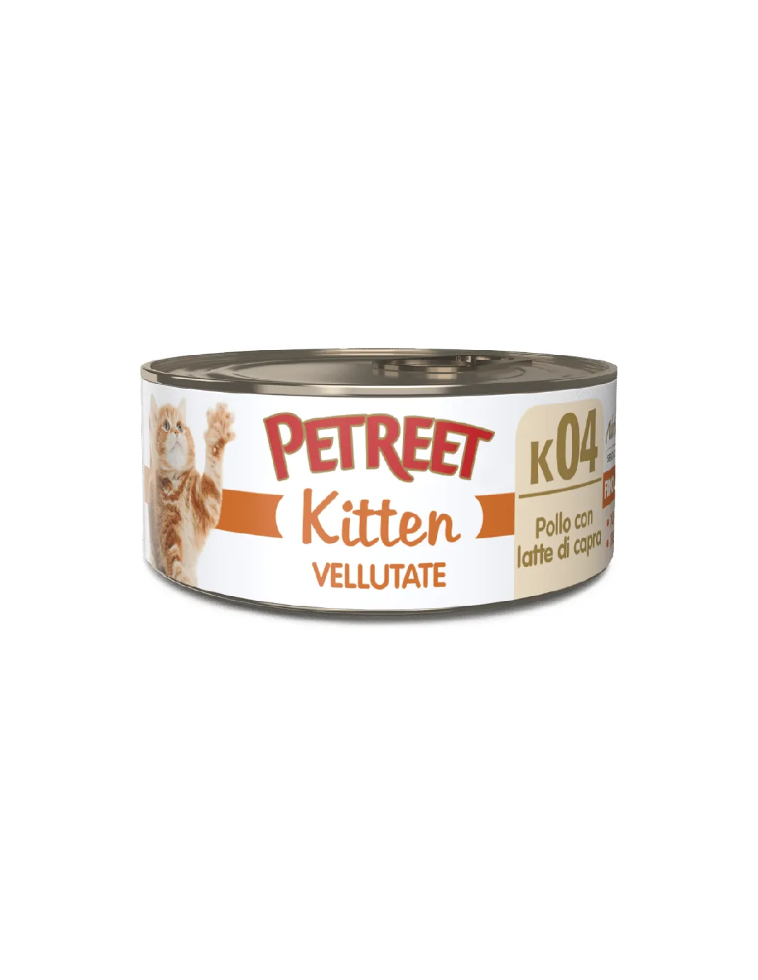 Die Formel wurde außerdem entwickelt, um ein optimales Gleichgewicht zwischen Kalzium und Phosphor sicherzustellen und die Bildung starker Knochen und Zähne in den kritischen Wachstumsmonaten zu fördern. Ohne Zusatz von Konservierungsmitteln oder künstlichen Farbstoffen garantiert Petreet Vellutate eine natürliche und sichere Ernährung Ihres Kätzchens.