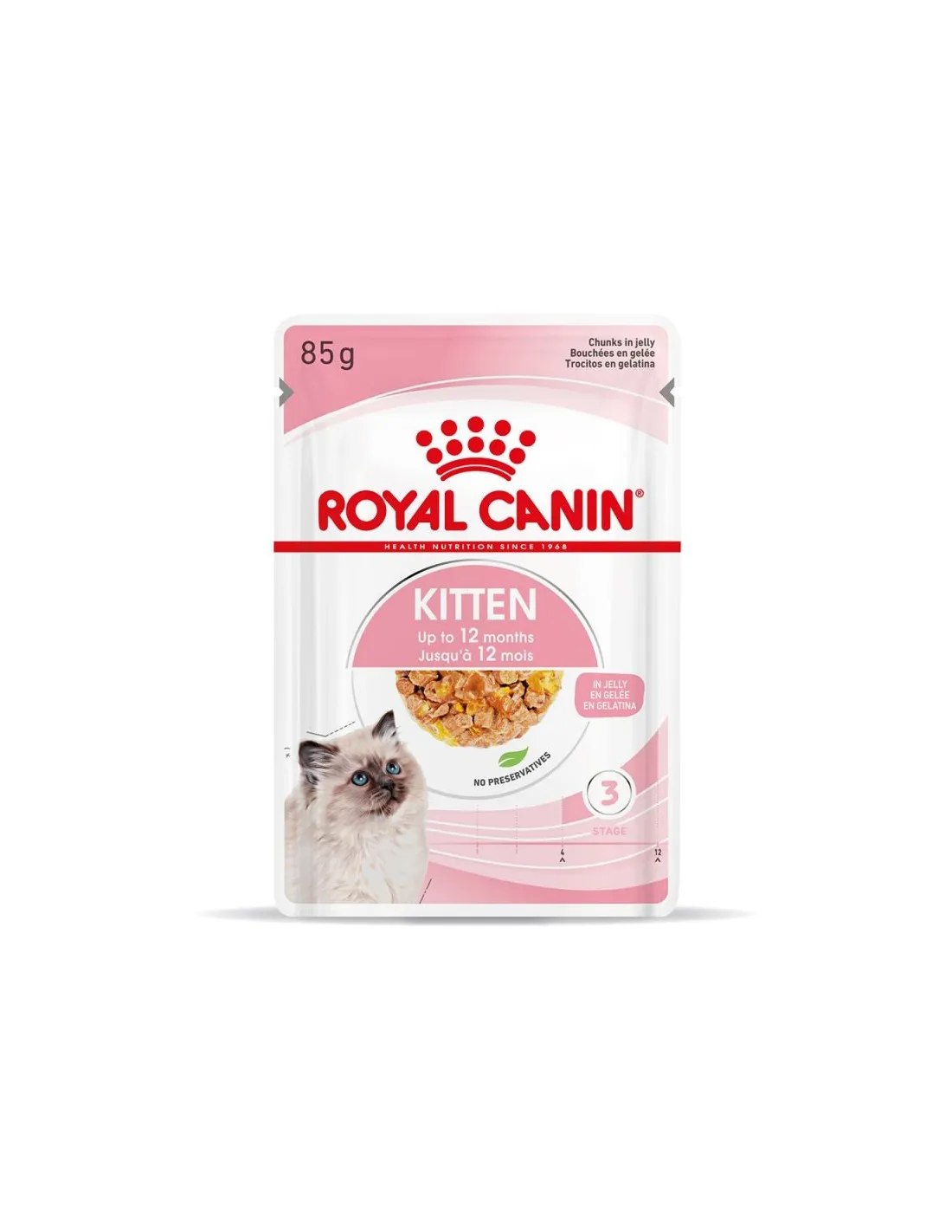 Royal Canin Cat Kitten Jelly ist ein Nassfutter, das speziell auf die Ernährungsbedürfnisse heranwachsender Kätzchen zugeschnitten ist. In praktischen 85-Gramm-Beuteln präsentiert, bietet dieses Produkt eine vollständige und ausgewogene Mahlzeit, angereichert mit essentiellen Nährstoffen, um ihre Entwicklung in den ersten Lebensmonaten zu unterstützen.