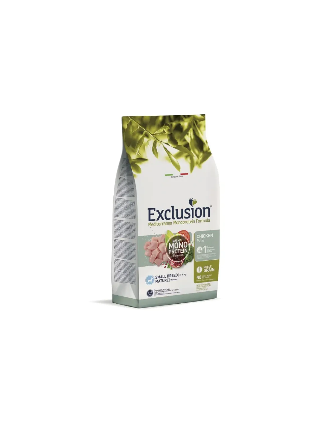 Exclusion Mediterraneo Mature Chicken Small 2 kg ist ein Trockenfutter, das speziell für kleine und erwachsene Hunde entwickelt wurde. Diese Formel ist auf die Ernährungsbedürfnisse erwachsener Hunde über 7 Jahre zugeschnitten und bietet eine vollständige und ausgewogene Mahlzeit, die zum allgemeinen Wohlbefinden und zur Gesundheit Ihres Haustieres beiträgt.
