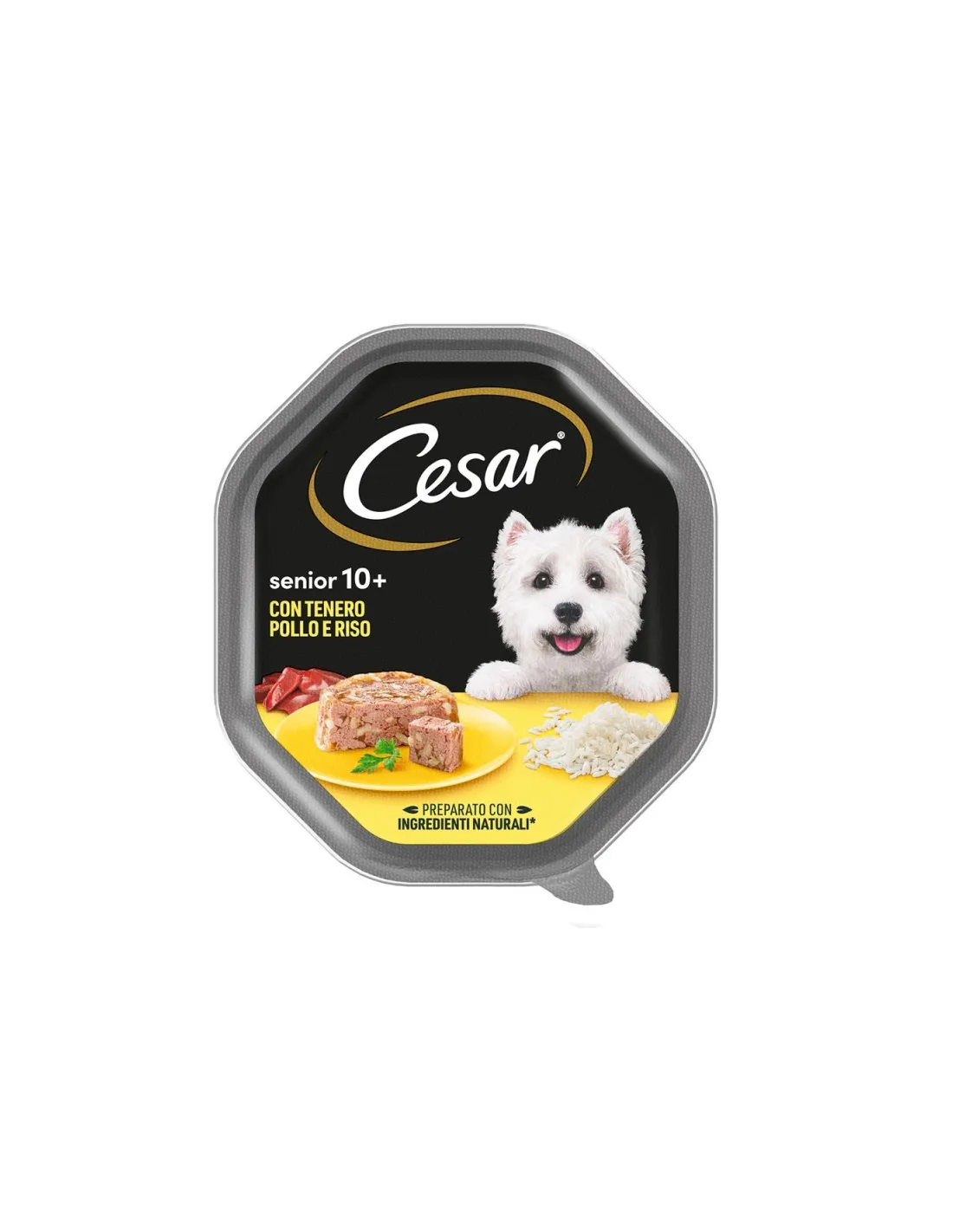 Cesar Senior 10+ Hundefutter mit zartem Huhn und Reis ist ein Alleinfuttermittel für ältere Hunde. Es wurde speziell für Hunde über 10 Jahre unter Berücksichtigung ihrer spezifischen Ernährungsbedürfnisse entwickelt. Die Rezeptur enthält leicht verdauliche und magenfreundliche Zutaten, ohne Zuckerzusatz, künstliche Aromen oder Farbstoffe.