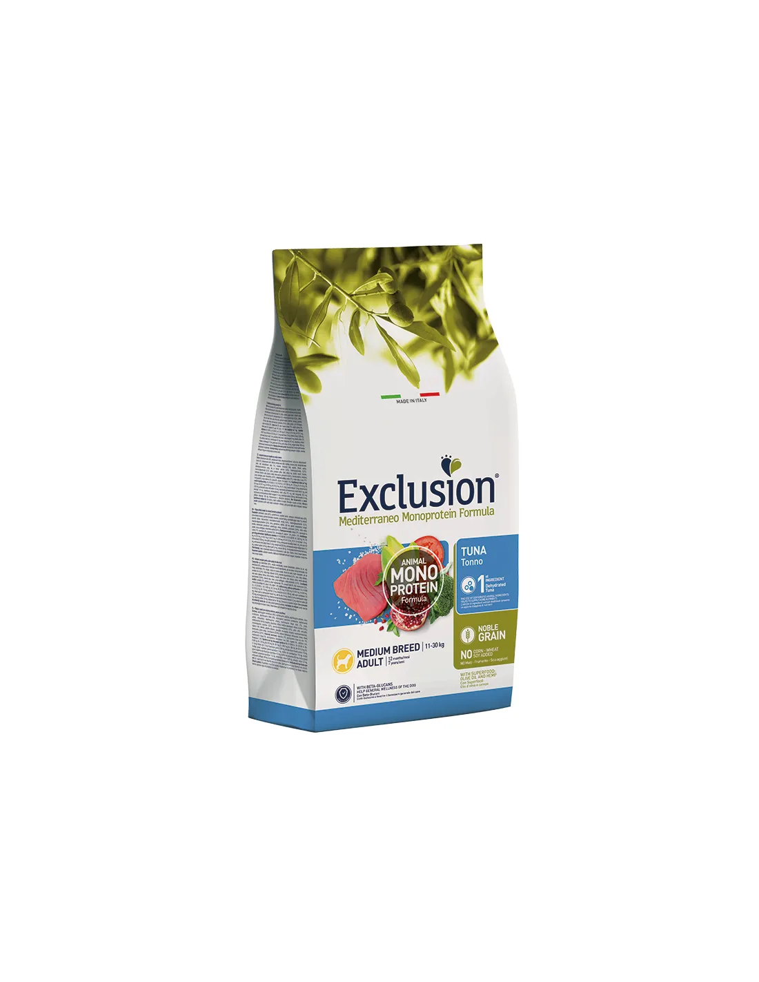 Ausschluss Mediterraneo Adult Medium Thunfisch 3 kg ist als Alleinfuttermittel für mittelgroße erwachsene Hunde geeignet. Es eignet sich besonders für Hunde, die eine getreidefreie Ernährung benötigen, da die getreidefreie Formulierung das Risiko von Nahrungsmittelunverträglichkeiten und -allergien verringert.