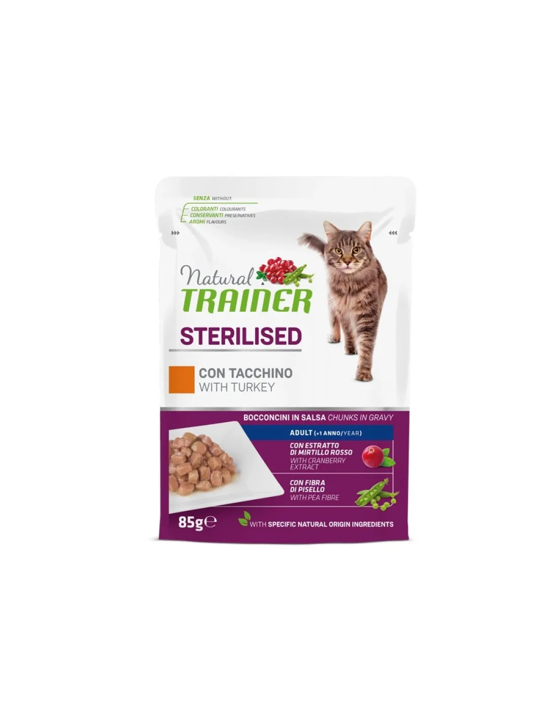 Produktbeschreibung: Trainer Adult Cat Bocconcini Ster. Truthahn ist ein Nassfutter für ausgewachsene Katzen. Präsentiert in 85-g-Beuteln ist es ideal für eine gesunde und ausgewogene tägliche Ernährung.