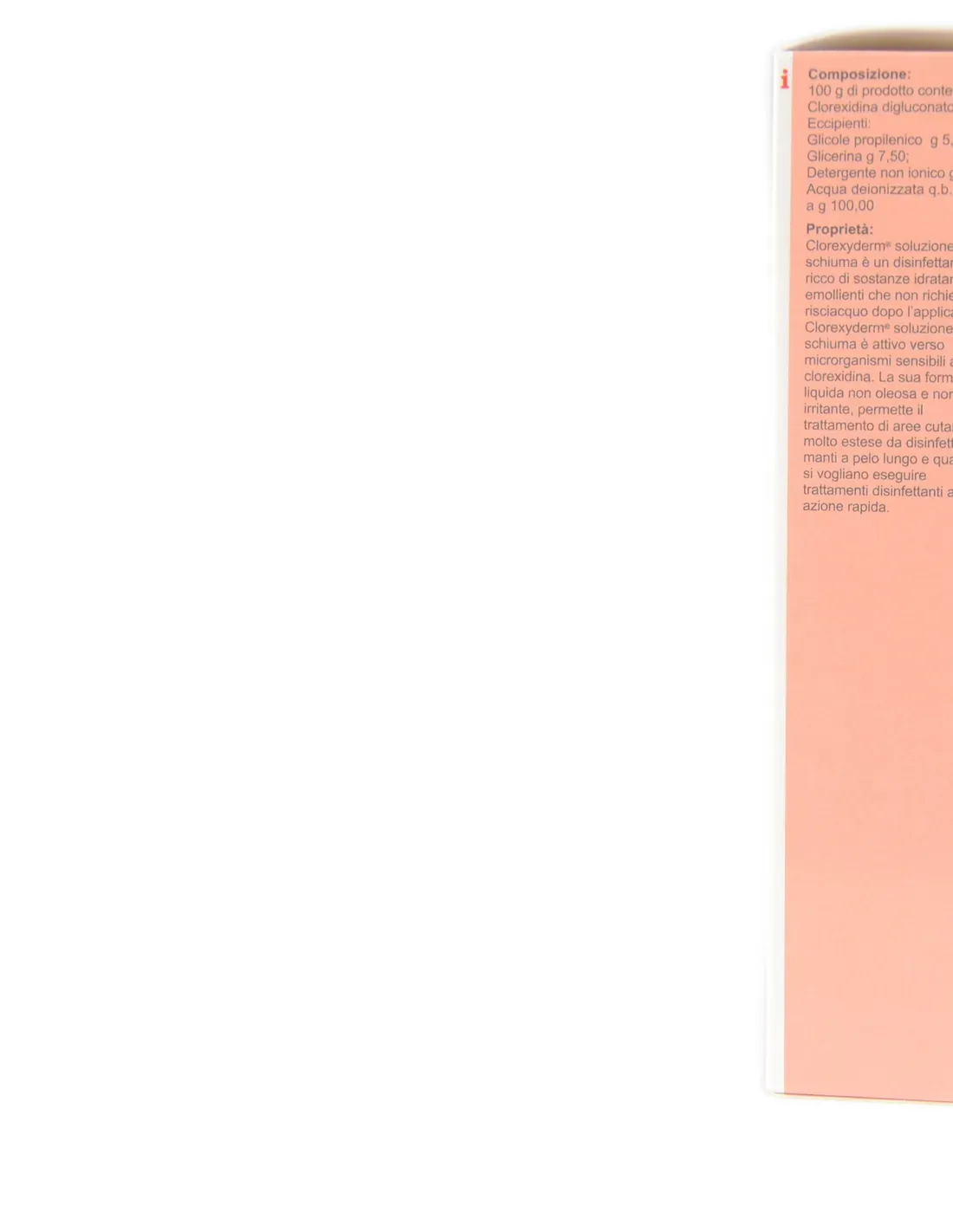 Clorexyderm-Lösung ist ein Desinfektionsmittel, das reich an feuchtigkeitsspendenden und erweichenden Substanzen ist und nach der Anwendung nicht abgespült werden muss.