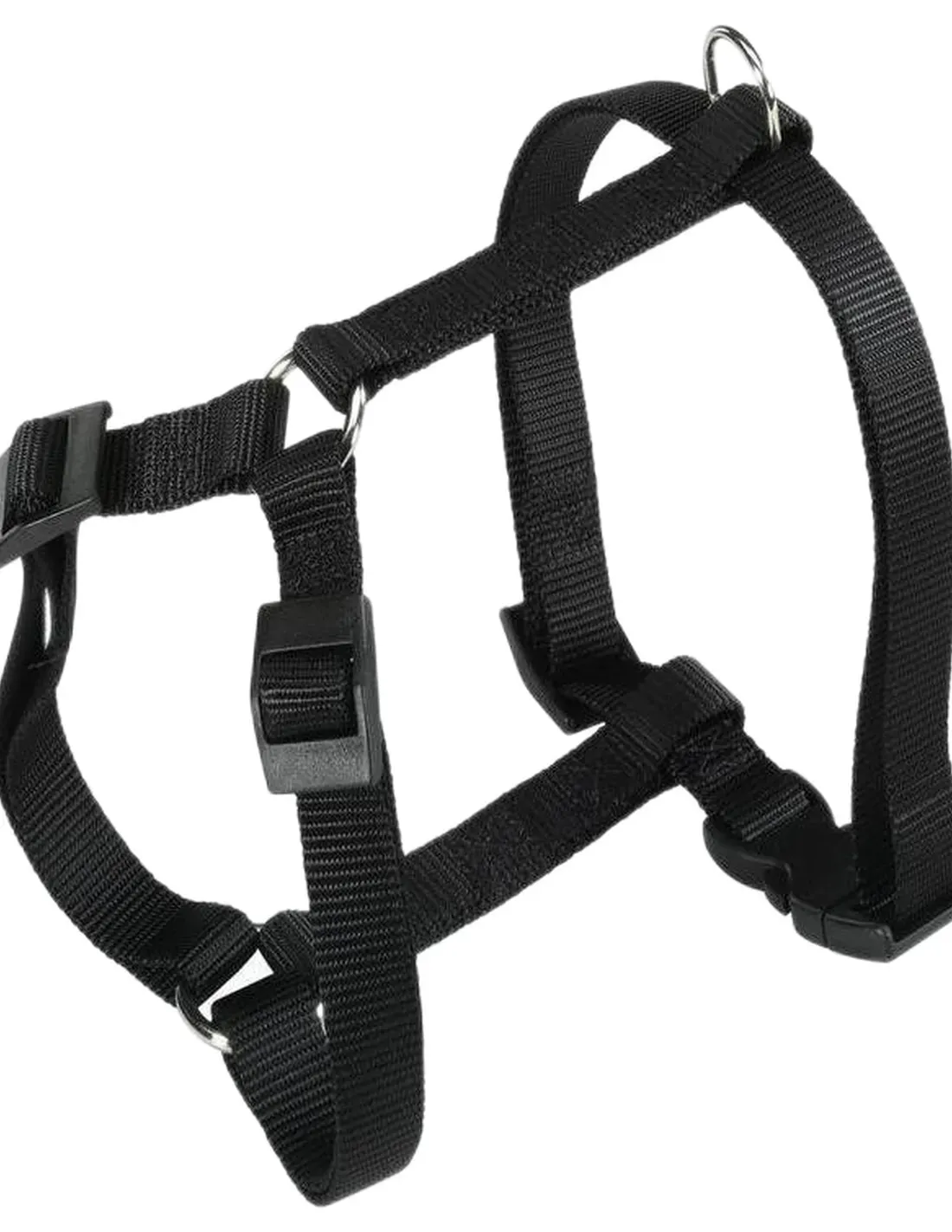 Verstellbare Gurte ermöglichen es Ihnen, das Geschirr für eine optimale Passform an die Statur Ihres Hundes anzupassen. Der Metallring am Rücken ermöglicht eine sichere Befestigung der Leine.