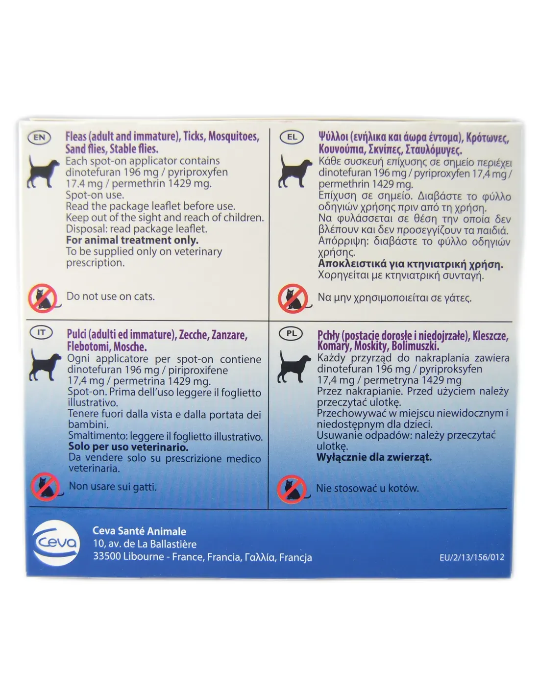 Enthält drei Wirkstoffe: Dinotefuran, Pyriproxyfen und Permethrin.