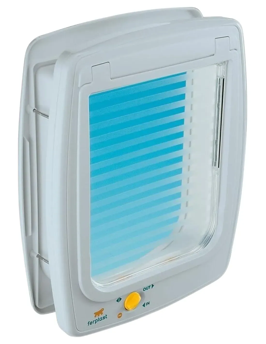 Die Katzenklappe verfügt über das innovative Wind Stopper System, ein Schutzsystem gegen Luftströmungen. Ein weiteres wichtiges Merkmal ist das 4-Wege-Verriegelungssystem, mit dem Sie die Öffnung der Tür je nach Bedarf anpassen können: nur Eingang, nur Ausgang, Ein- und Ausgang oder geschlossen. Alle größeren Türen werden mit einem 5-cm-Tunnel geliefert, der eine Anpassung an dickere Strukturen und die Möglichkeit zum Zuschneiden ermöglicht.