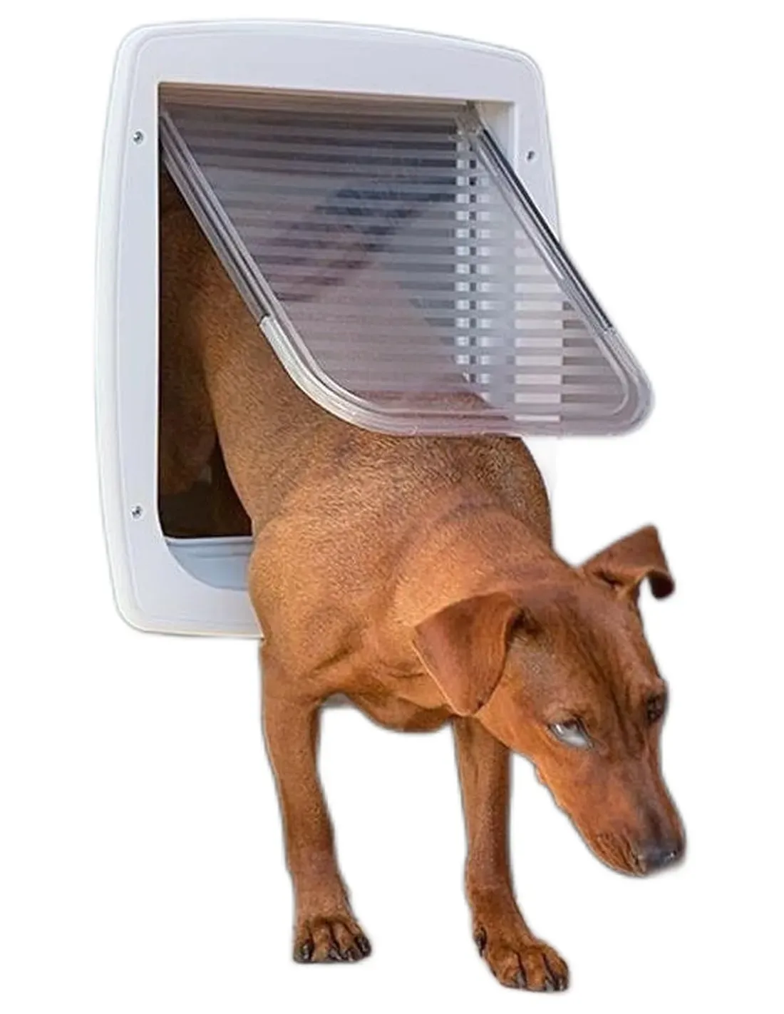 Die Tür Swing 11 ist dank ihrer großzügigen Abmessungen perfekt für mittelgroße Hunde, kann aber auch für besonders große Katzen verwendet werden. Aus robustem Kunststoff gefertigt, kann es dank der universellen Installation problemlos an jeder Holz-, Metall-, Glasstruktur oder Tür und sogar an Mauerwerkswänden montiert werden.
