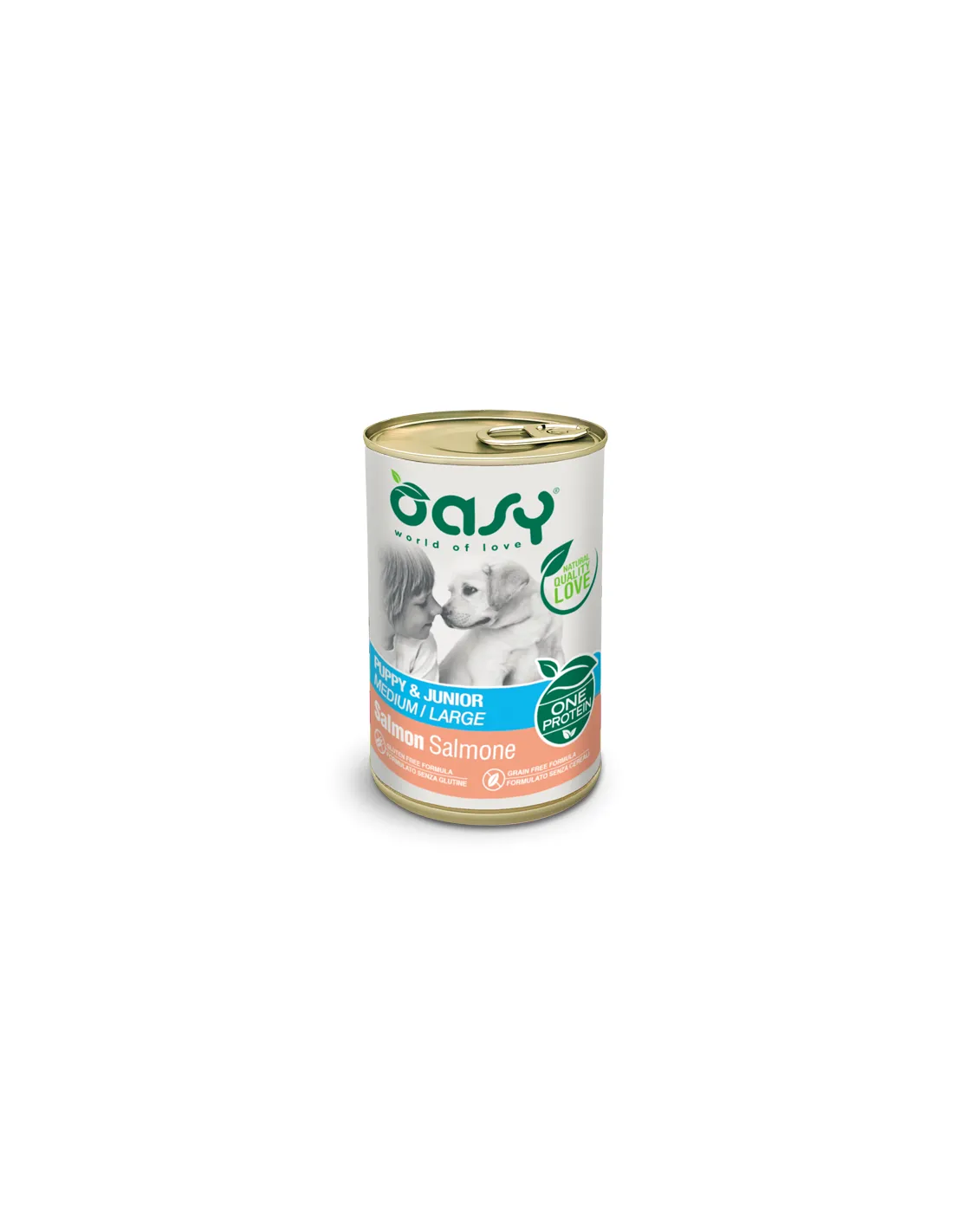 Das Produkt „OASY – Puppy & Junior All Breed Monoprotein Lachs 400gr“ ist ein komplettes und ausgewogenes Futter für Welpen mittlerer und großer Rassen bis zu 18 Monaten. Dieses Futter ist dank seiner Monoproteinformel auf Lachsbasis ideal für Hunde mit Nahrungsmittelunverträglichkeiten, Darm- und Hautempfindlichkeiten. Es ist frei von Gluten, Getreide, GVO und Soja und wurde nicht an Tieren getestet, was einen ethischen und respektvollen Ansatz garantiert.