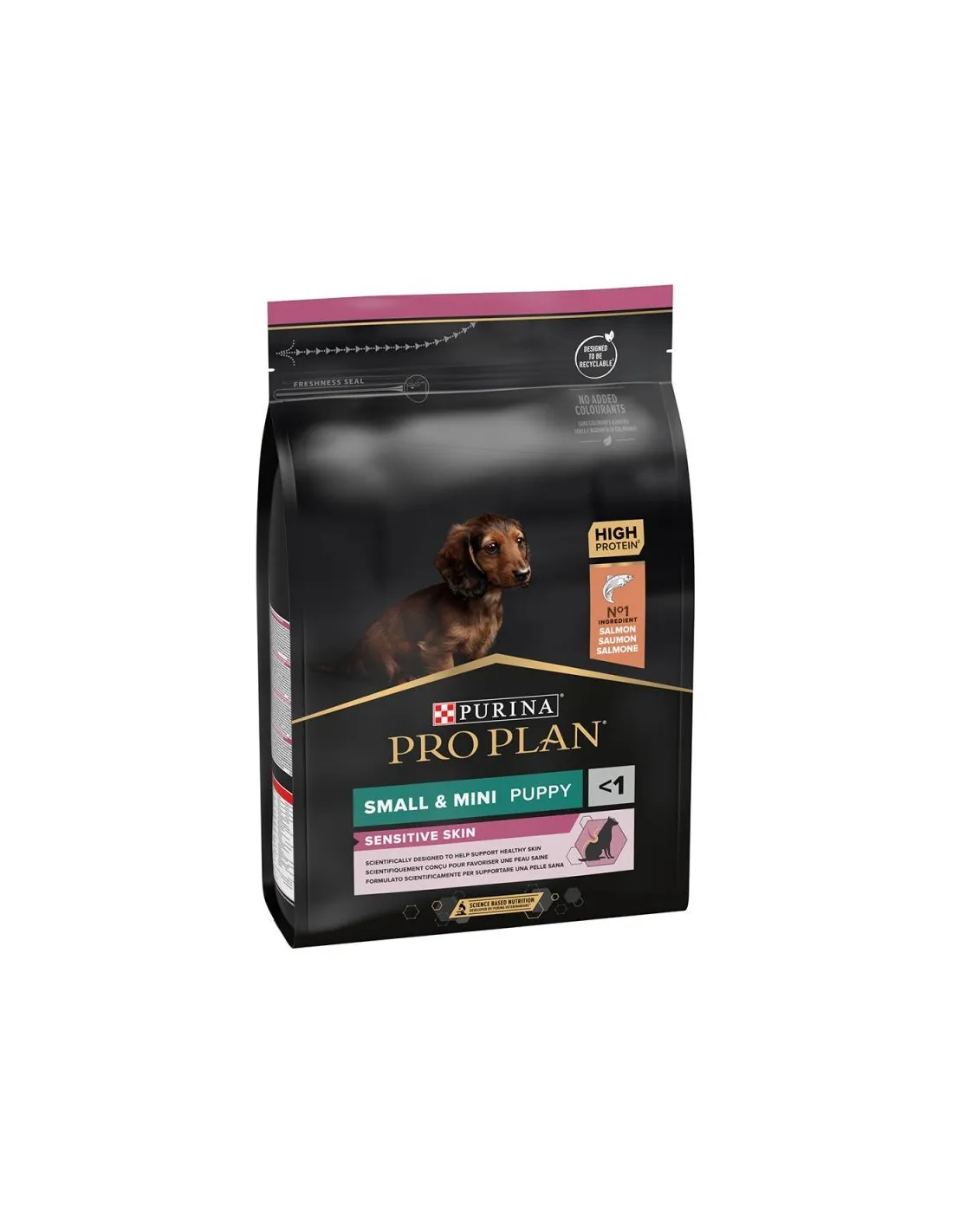 Purina Pro Plan OptiDerma Puppy Sensitive Small & Mini Salmon 3 kg ist ein Trockenfutter, das speziell für Welpen kleiner und kleiner Rassen mit empfindlicher Haut entwickelt wurde. Dieses Produkt ist ideal zur Unterstützung der dermatologischen Gesundheit und des allgemeinen Wohlbefindens Ihres Welpen während seiner kritischen Wachstumsphase.