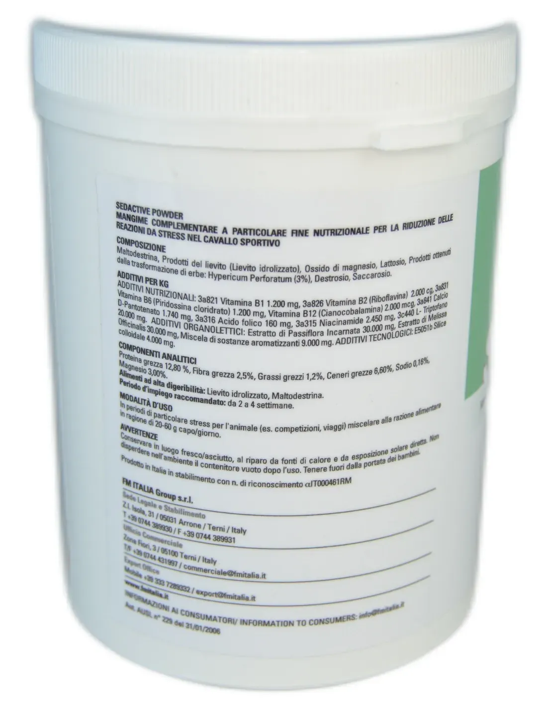 Sedactive Powder FM Italia ist ein Pulver, das speziell für das Management des Tierschutzes entwickelt wurde und dessen genaue Zusammensetzung die Entspannung und ein optimales psychophysisches Gleichgewicht fördern soll.