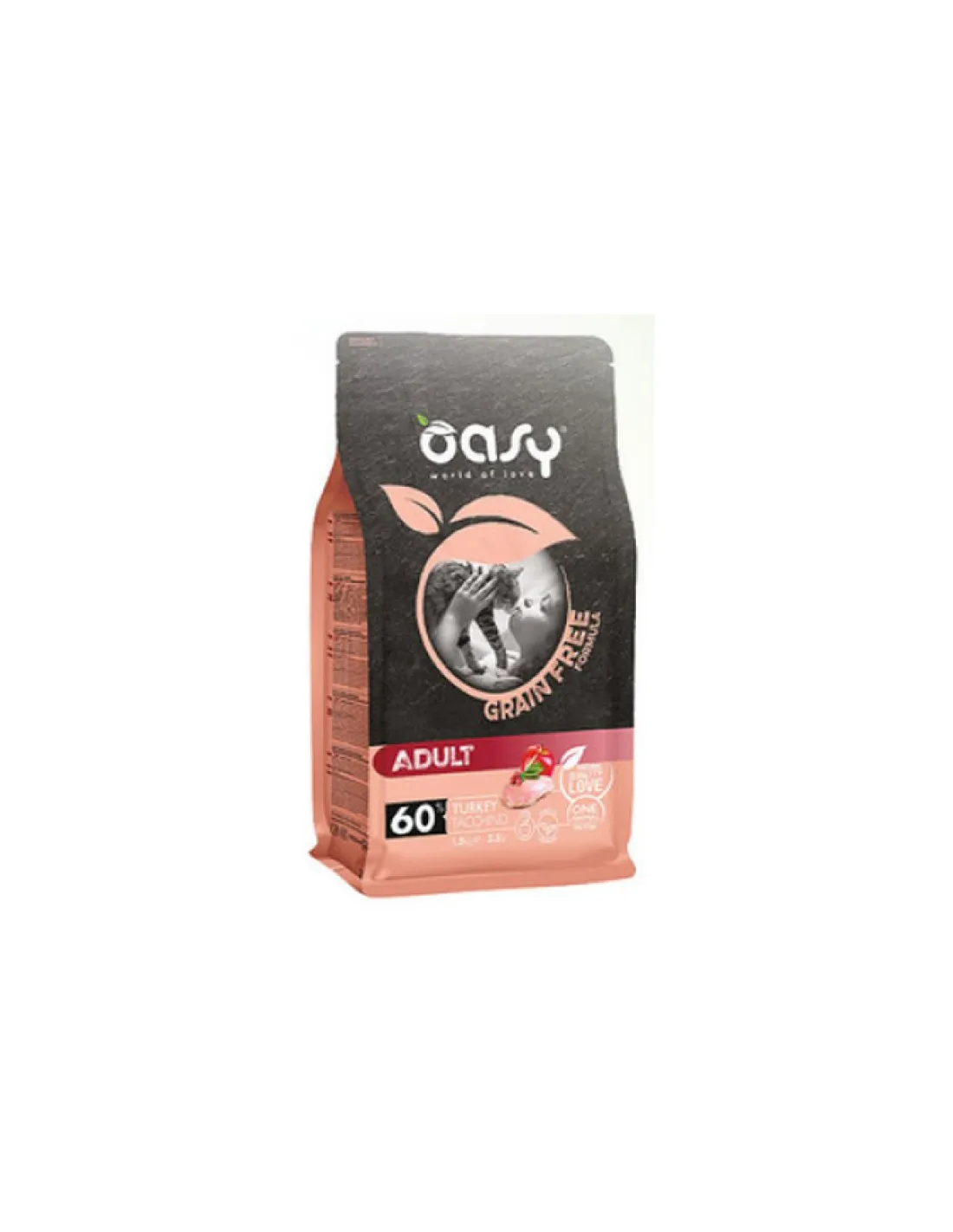 Oasy Dry Cat - Adult Turkey ist ausschließlich zur Fütterung ausgewachsener Hauskatzen bestimmt. Die Formel wurde entwickelt, um den spezifischen Ernährungsbedürfnissen der Katzenart gerecht zu werden und dabei die für Katzen typischen physiologischen und metabolischen Eigenschaften zu berücksichtigen.