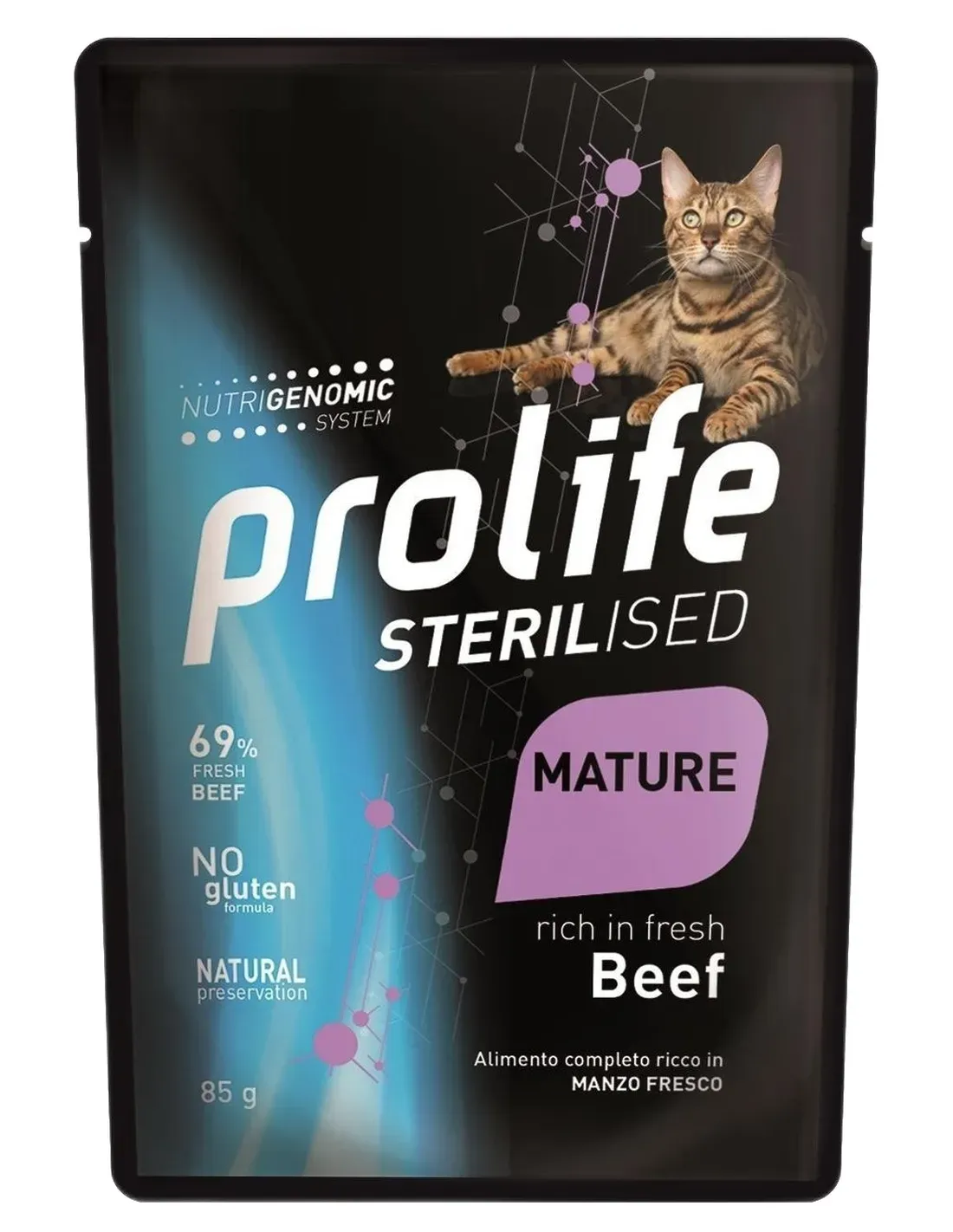 Prolife Sterilised Mature with Beef ist ein Alleinfuttermittel reich an frischem Rindfleisch für empfindliche und/oder sterilisierte Katzen. Die sterilisierte Katze benötigt eine spezielle Ernährung, die den neuen Bedürfnissen und der häufigen Angewohnheit einer sitzenden Lebensweise gerecht wird. Prolife reagiert darauf mit einer Futterlinie, die reich an köstlichem Frischfleisch ist und die Bedürfnisse aller sterilisierten, empfindlichen, übergewichtigen und älteren Katzen befriedigen kann.