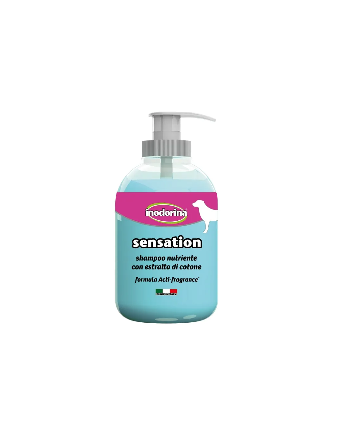 „Inodorina Sensation“ ist ein Hundeshampoo, das das Fell Ihres Vierbeiners rundum pflegt. Angereichert mit Baumwollextrakt reinigt dieses Shampoo nicht nur gründlich, sondern pflegt auch Fell und Haut und macht das Fell weich, glänzend und voller Vitalität. Seine exklusive Acti-Fragrance-Formel kombiniert hochwertige Rohstoffe und natürliche ätherische Öle, die aufgrund ihrer lang anhaltenden und widerstandsfähigen Geruchseigenschaften ausgewählt wurden und so die Beständigkeit des Parfüms gewährleisten. Die Gesundheit der Haut Ihres Hundes wird durch die tonisierende und elastische Wirkung des Shampoos geschützt, das auch vor Witterungseinflüssen schützt. Inodorina Sensation ist ein sicheres und zuverlässiges Produkt ohne Parabene für die tägliche Pflege Ihres Hundes.