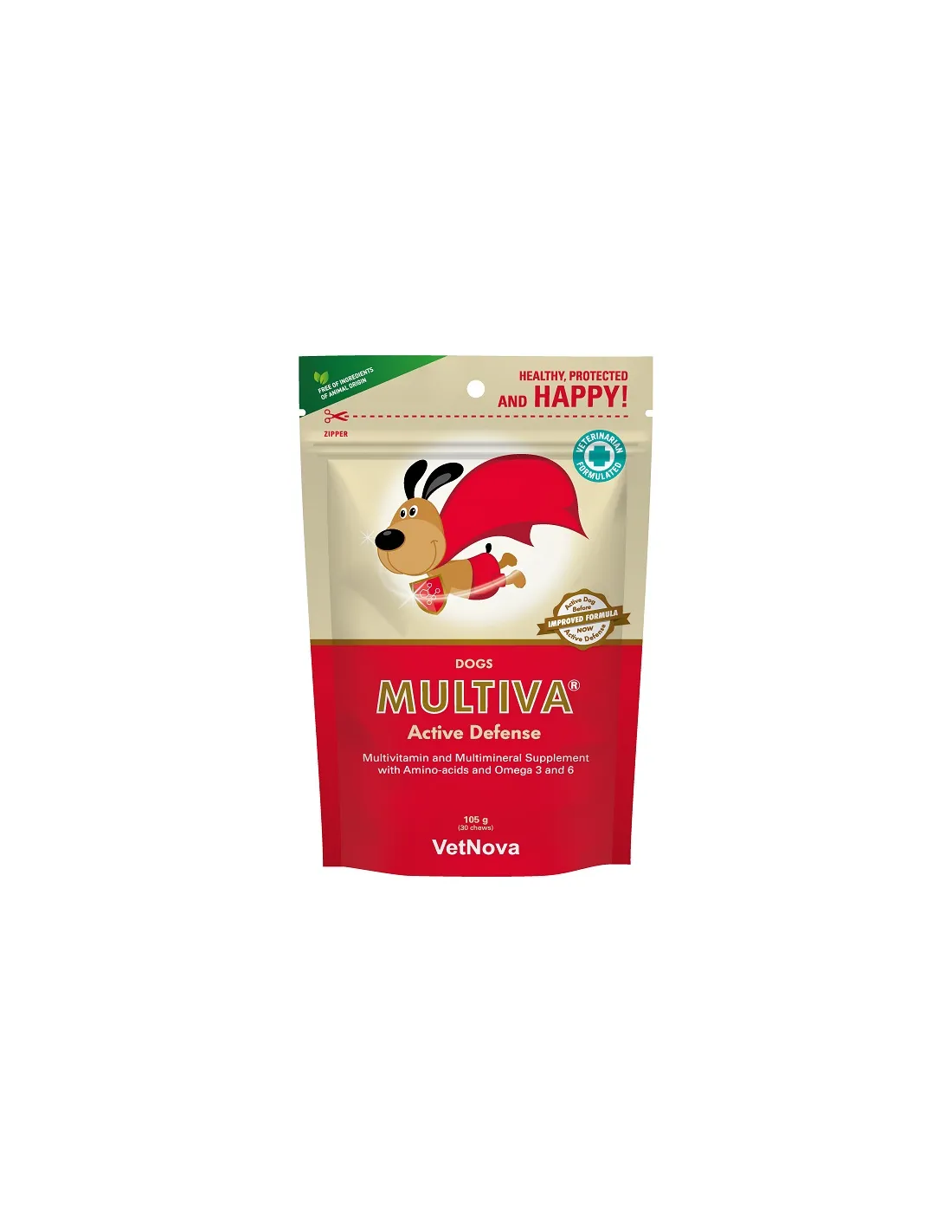 Die Formel von Multiva Active Defense Cani 400GR besteht aus einer synergistischen Mischung von Wirkstoffen natürlichen Ursprungs, die sorgfältig aufgrund ihrer Wirksamkeit bei der Stärkung des Immunsystems ausgewählt wurden. Zu den Hauptbestandteilen zählen phytotherapeutische Extrakte, die für ihre immunstimulierende Wirkung bekannt sind, grundlegende Vitamine wie Vitamin C und E, die oxidativen Stress bekämpfen und die zellulären Abwehrbarrieren stärken, sowie Spurenelemente wie Zink und Selen, die für eine korrekte Immunfunktion unerlässlich sind. Das Nahrungsergänzungsmittel ist mit Hefenukleotiden, Beta-Glucanen und natürlichen Antioxidantien angereichert, die dazu beitragen, die Reaktionsfähigkeit des Immunsystems gegenüber äußeren Reizen zu erhöhen. Ebenfalls enthalten sind essentielle Aminosäuren, die die Proteinsynthese und Muskelregeneration unterstützen, sowie Laktobazillen, die das Gleichgewicht der Darmflora fördern, die für ein effizientes Immunsystem unerlässlich ist. Durch den Verzicht auf künstliche Farb- und Konservierungsstoffe ist das Produkt auch für Hunde mit Nahrungsmittelunverträglichkeiten oder einer Veranlagung zu Nahrungsmittelunverträglichkeiten geeignet. Jede Dosis garantiert eine ausgewogene Versorgung mit den Nährstoffen, die jeder Hund benötigt, unabhängig von Größe, Art oder Alter. Die Zusammensetzung von Multiva Active Defense ist auf eine langanhaltende Unterstützungswirkung ausgelegt, mit spürbaren Vorteilen sowohl hinsichtlich der Prävention als auch der Unterstützung in den Phasen der Genesung oder vorübergehenden Schwächung.
