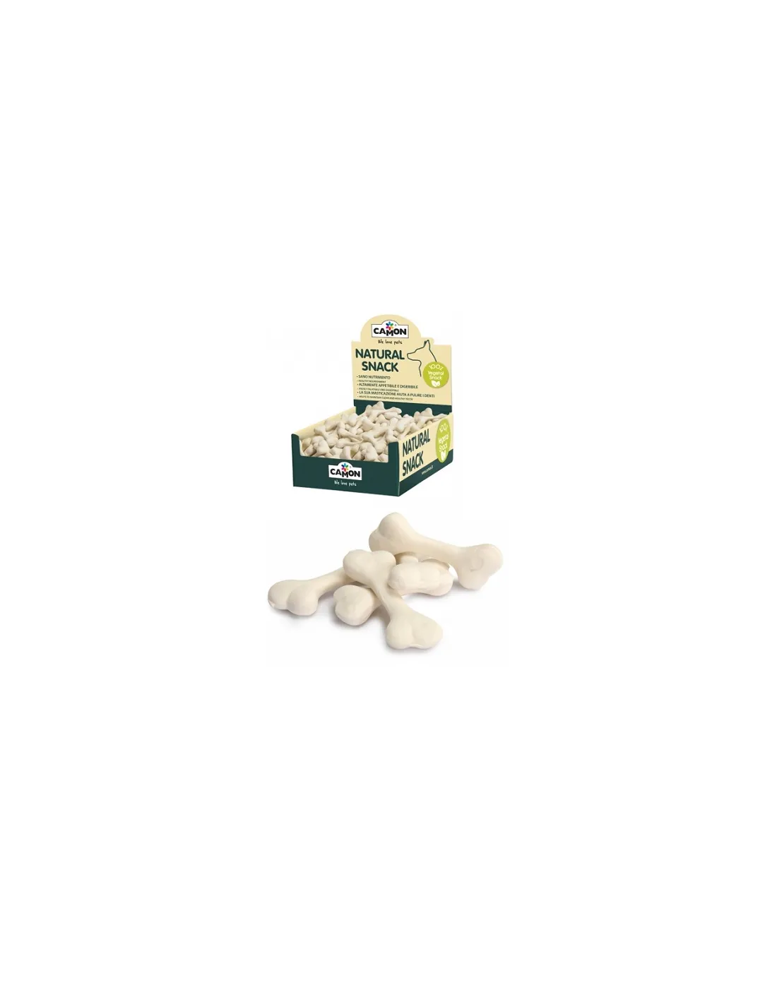CAMON NATURAL SNACK ist ein 100 % pflanzlicher Snack in Knochenform, der als gesunde Ernährung für Hunde konzipiert ist. Diese Leckerbissen sind sehr schmackhaft und bekömmlich und daher eine ausgezeichnete Wahl für Hundebesitzer, die ihrem Haustier einen leckeren Leckerbissen bieten möchten, der auch zu seiner allgemeinen Gesundheit beiträgt. Das Kauen dieser Snacks trägt zur Reinigung Ihrer Zähne bei, fördert die Mundhygiene und beugt der Bildung von Plaque und Zahnstein vor.