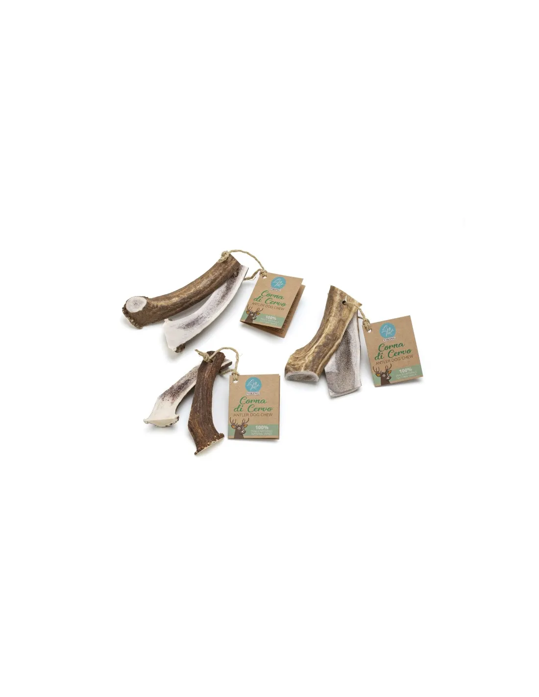 Geweihe bestehen zu etwa 54 % aus Kalzium, das gut für die Knochen ist, und zu 44 % aus organischer Substanz – meist Proteinverbindungen, in die reichhaltige Mineralien eingebettet sind. Hirschgeweihe sind fettarm und reich an Kalzium und Proteinen und stellen eine bewusste Alternative – ökologisch und tierversuchsfrei – zu den gängigsten Hundesnacks dar. Dieses Produkt eignet sich besonders für Hunde mit Nahrungsmittelunverträglichkeiten oder Übergewichtsproblemen, da es weder Fleisch noch Getreide enthält und völlig fettfrei ist.
