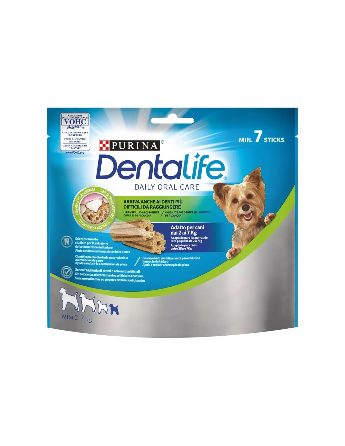 PURINA DENTALIFE Extra Mini ist ein Zahnpflegesnack für sehr kleine Hunde. Diese Snacks sind so formuliert, dass sie die Zahnsteinbildung reduzieren, und haben den Geschmack von Hühnchen. Jede Packung enthält 5 Päckchen à 69 g.