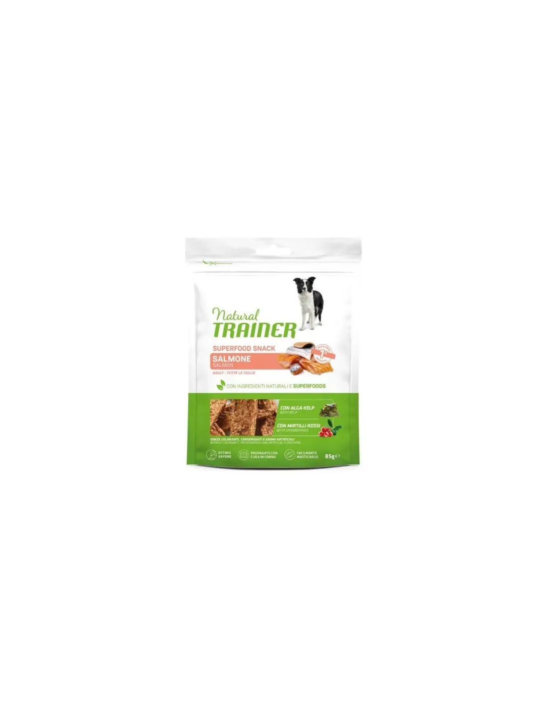 NT SUPERFOOD SNACK LACHS GR 85 ist ein gesunder Snack für Hunde, formuliert mit natürlichen Zutaten und Superfoods. Dieser Snack ist Teil einer Linie, die auch Geschmacksrichtungen wie Huhn und Rindfleisch umfasst, aber Lachs ist der Protagonist dieser Variante, der 35 % der Zusammensetzung ausmacht, gefolgt von Weißfisch mit 31 %. Diese hochwertigen Zutaten werden mit Superfoods wie Chiasamen, Seetang, Spinat und Quinoa kombiniert, die die Ernährung Ihres Hundes mit essentiellen Nährstoffen bereichern.