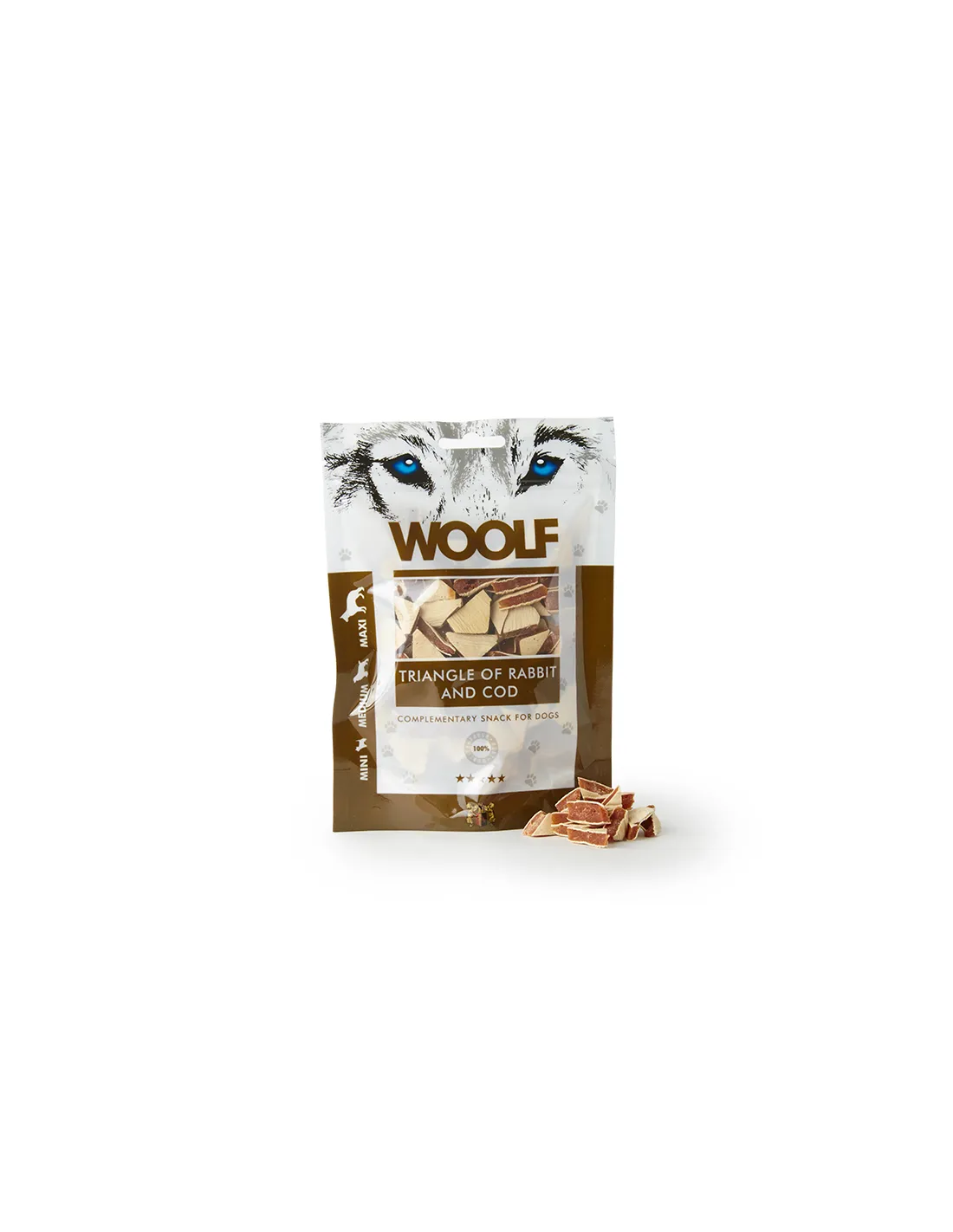 Woolf Snack Rabbit and Cod Triangles ist daher eine ausgezeichnete Wahl, um Ihren Hund glücklich und gesund zu halten und ihm einen ebenso leckeren wie wohltuenden Snack zu bieten.