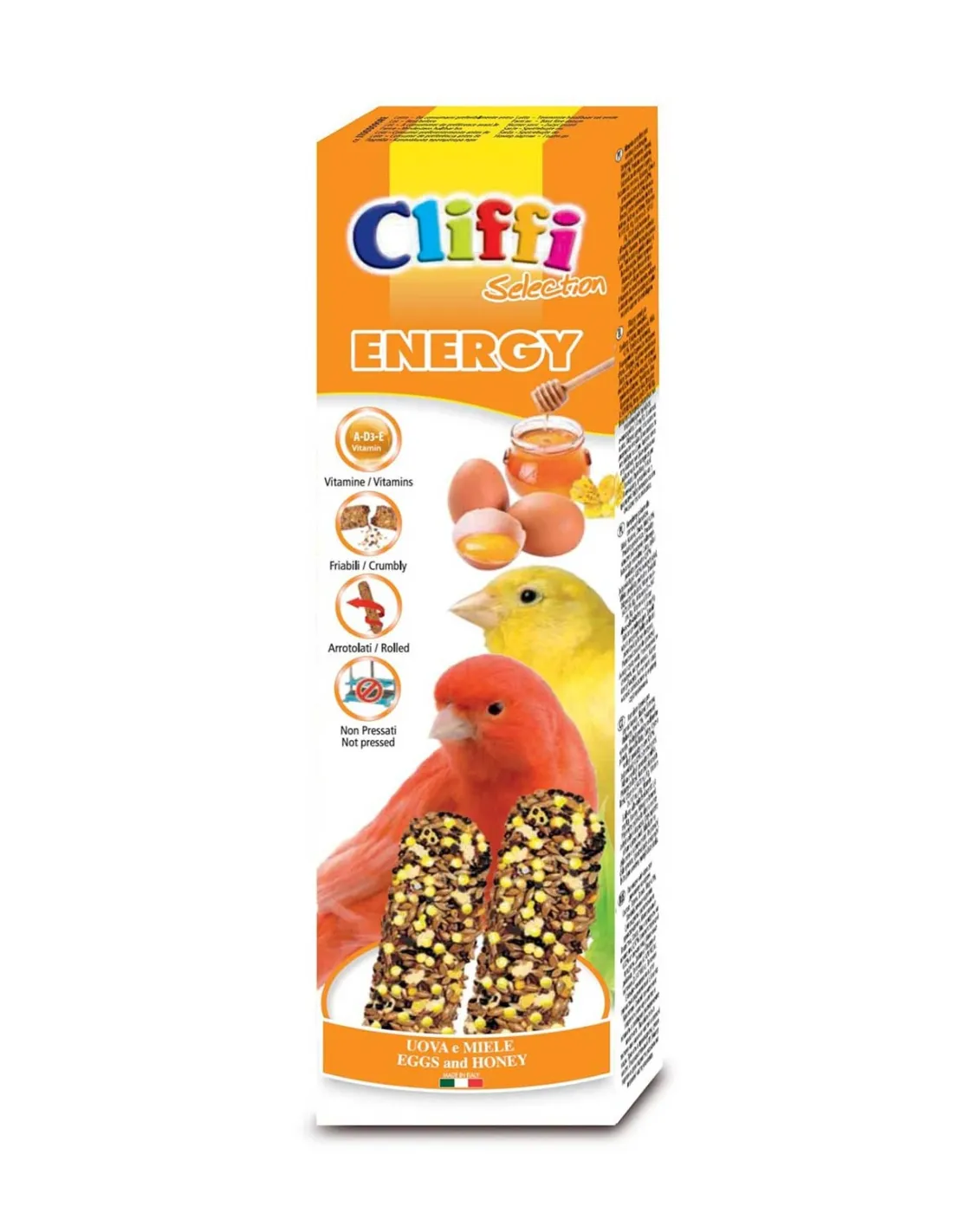 Cliffi Sticks Kanarienvögel mit Eiern und Honig „Energie“ 60 gr ist ein Alleinfuttermittel für Haustierkanarien.