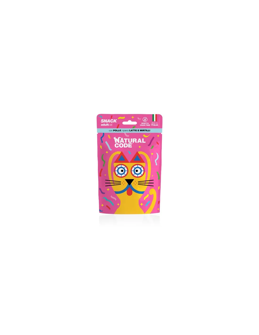 Natural Code Snack Cat Adult Getreidefreie Hühnermilch-Blaubeeren 60 g ist ein köstlicher und gesunder Snack für Ihre erwachsene Katze. Dieses Produkt ist völlig getreidefrei und daher ideal für Katzen mit Nahrungsmittelunverträglichkeiten oder speziellen Diäten.